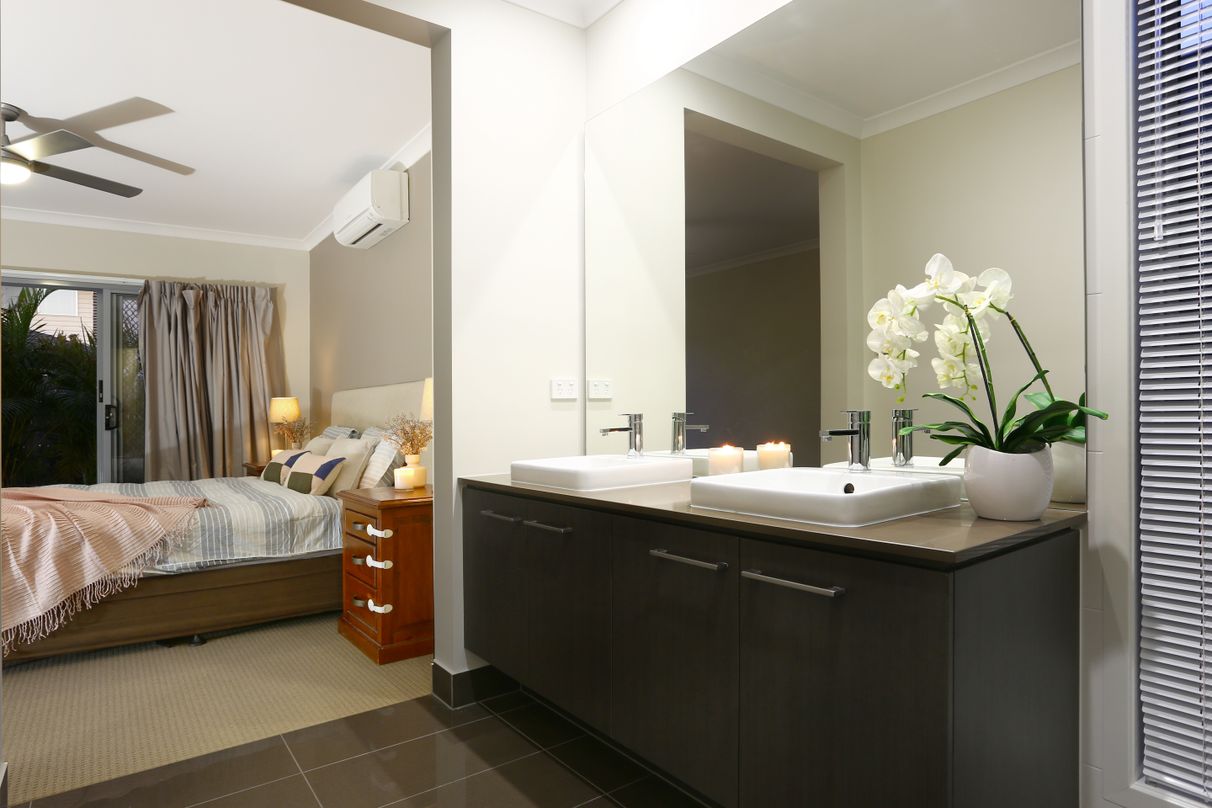 The grand master bedroom boasts a double vanity ensuite with rain-shower, separate toilet room and wall to wall sliders that lead to the outside parents sitting area. Clothes and shoe storage are easy with a huge 3-metre walk-in closet with extensive storage space that reaches the ceiling!