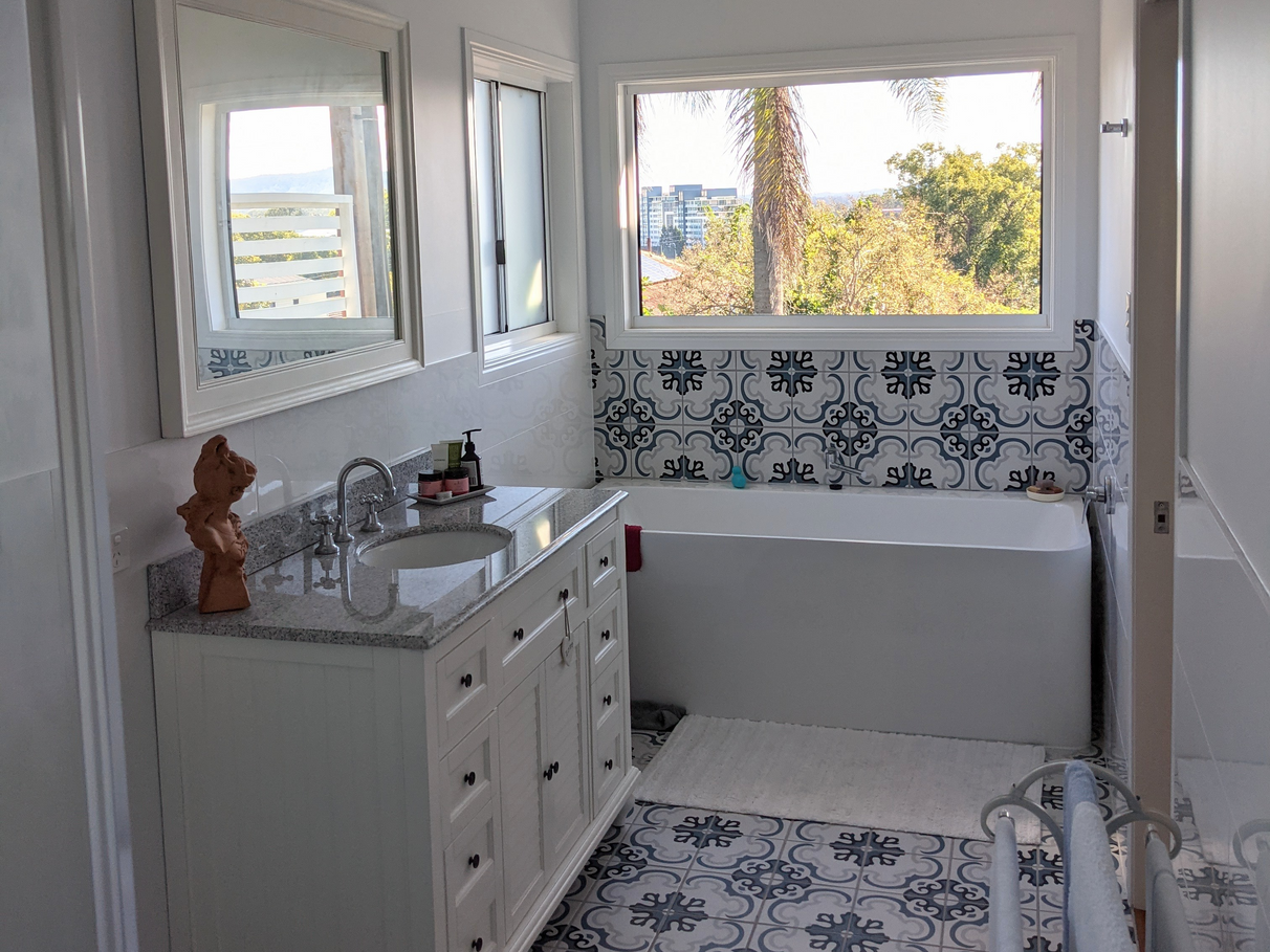 Newly built and spacious, the house is well positioned on a quiet street. Four bedrooms are split over two levels. Upstairs you will find a generous living room and open plan kitchen with ample cupboard space and island bench. The large lounge room opens onto a breezy balcony with stunning city views, perfect for entertaining family and friends. Floor to ceiling glass sliding doors plus generous windows create a bright and open living area with views.
