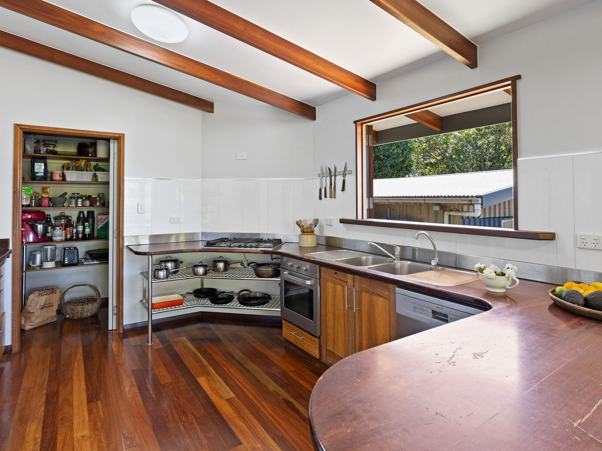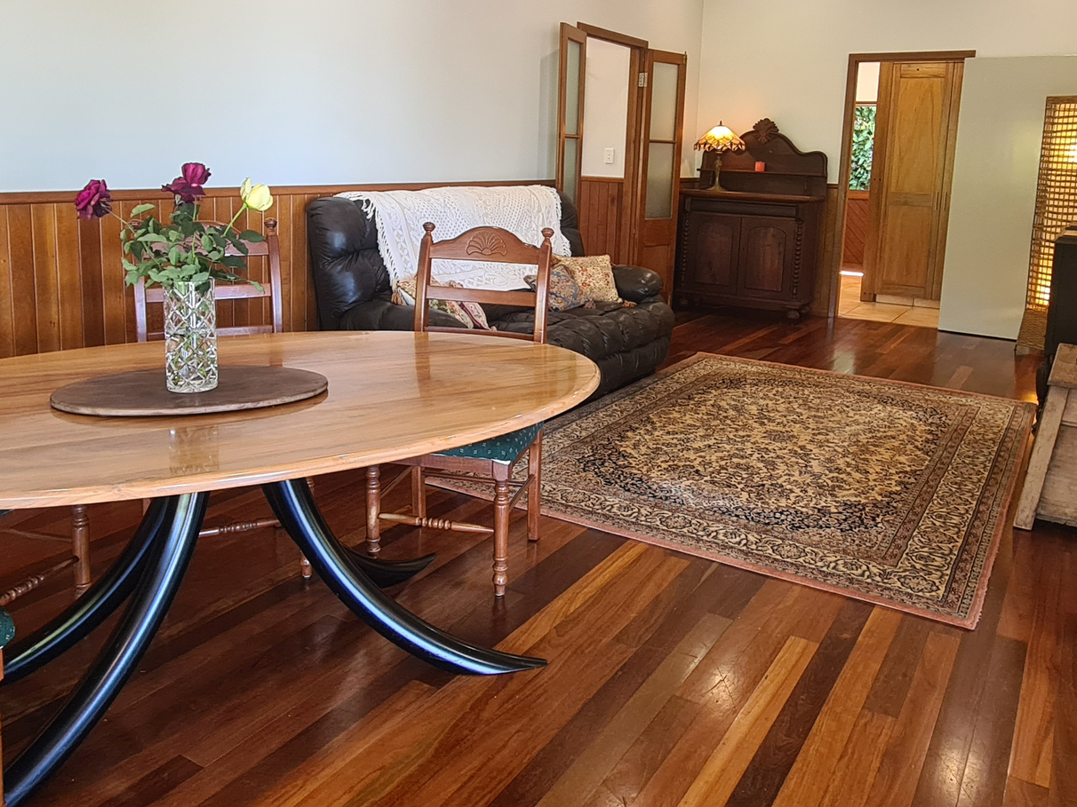 When you enter the home from the spacious 4.2m x 8m veranda, be in awe of the polished timber floors, exposed timber beam ceilings and recycled timber features through the house. The open plan living, dining and kitchen area is complete with ample storage, bench space, breakfast bench and large pantry. The doors fully open so you can utilise the living/dining/kitchen and veranda area as one.