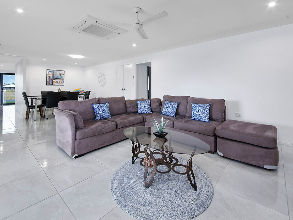 Fully Furnished Property, only ever used as a Holiday home in beautiful Zilzie Bay. Move straight in, no need to worry about transporting furniture or continue as a Holiday/Short Term rental. This is a Master Built property built by Hooper Constructions, completed in December 2012. This property has never been fully occupied. The property is absolutely immaculate and in brand new condition. It has been well maintained since new. It would be ideal for dual living. It has four bedrooms and 2.5 bathrooms. Large Master with Ensuite and two living areas. Air Conditioning Units throughout are Mitsubishi Cassette Type Units. There is also an automatic full pop up irrigation system throughout the entire Fully fenced yard. Bedrooms are carpet, living areas are large 600x600 Tiles, stunning looking semi gloss. Close to beach/boat ramp and 30 minute drive to Rockhampton. Very quiet area, becoming popular with retirees. 3x3 Garden Shed with plenty of room to build a big shed to accommodate boat or caravan. Flat block with wide side entrance with high aluminium double gates and Rain Water Tank into Toilets and Laundry. Skillion Roof makes large roof space, ideal for Attic. Could be easily set up for dual living as Master, Ensuite and living area at front of house, then rear of the house has a cavity door to close off three bedrooms and bathroom at the rear of the house. A Kitchenette could easily be added.