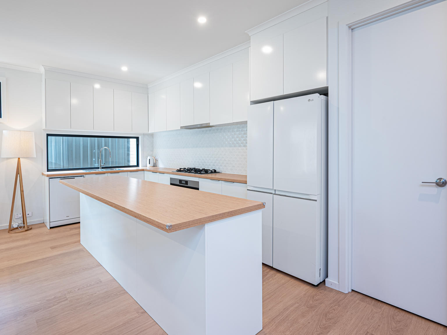 The kitchen features 900cm stainless appliances including gas cook top and oven, dishwasher and ample storage, seamlessly connecting to the dining area and overlooking the outdoor entertaining space.