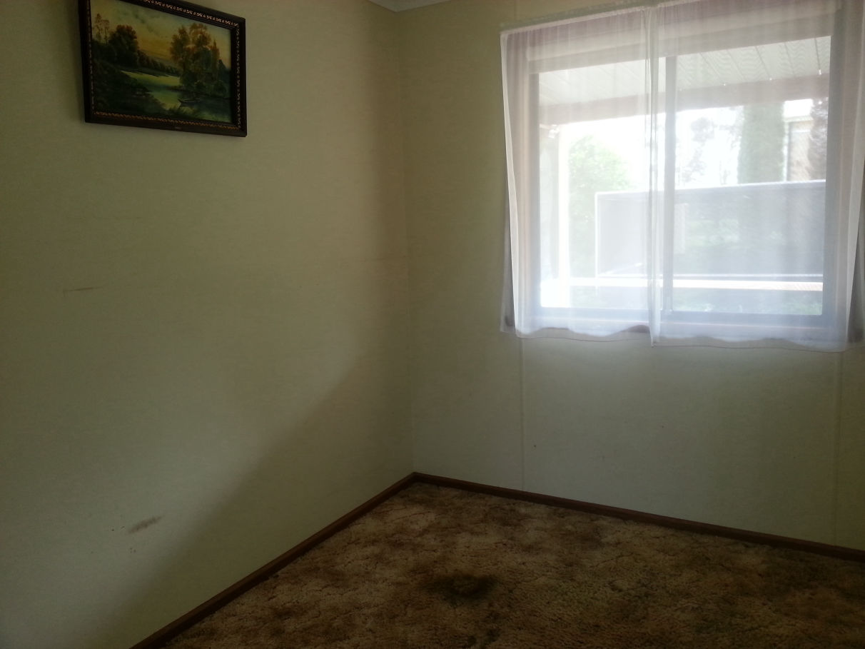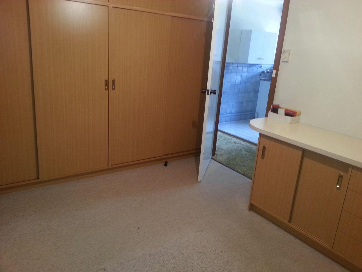 Single bedroom with BIR, separate drawer cupboard, ceiling fan, carpet and roller shutters blinds.
