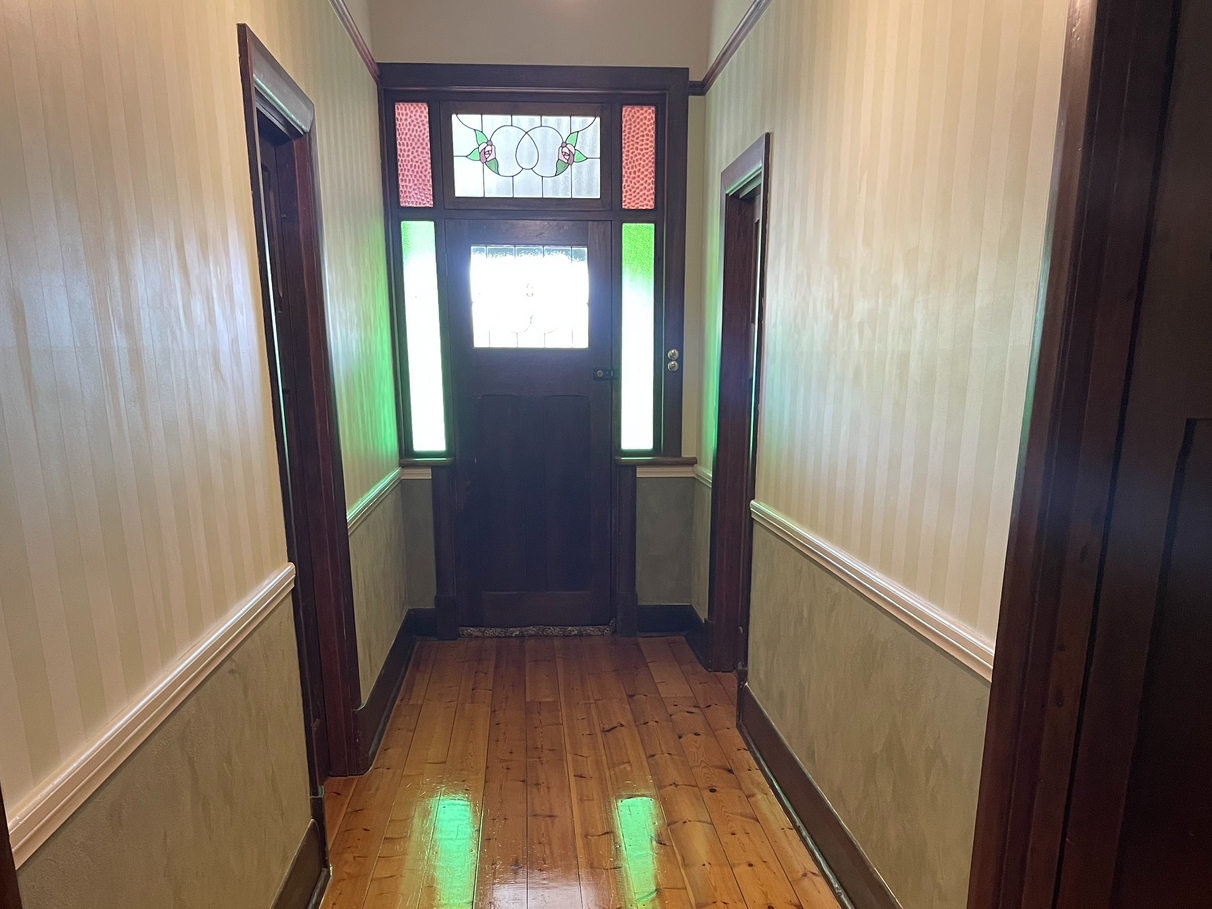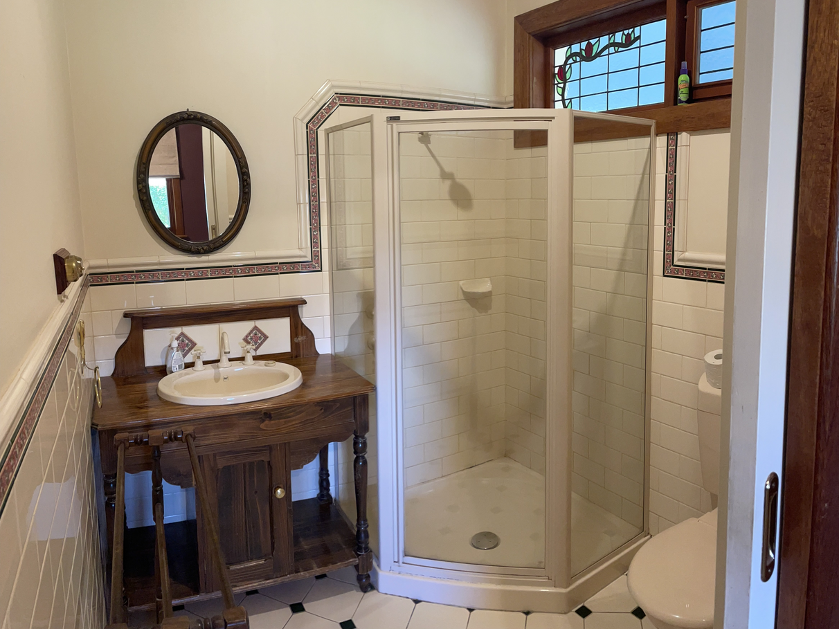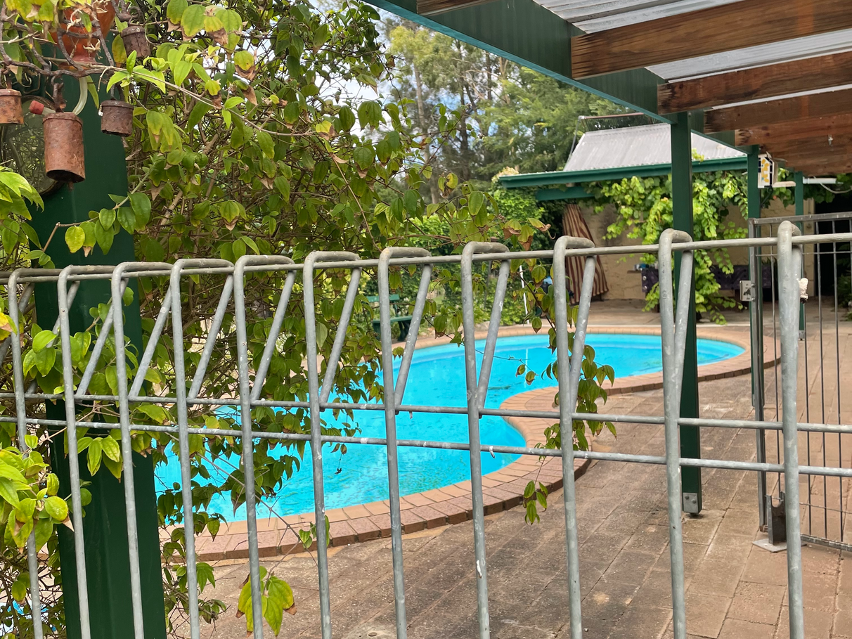 4 bedrooms, main with ensuite and WI robe, 2 with built ins and ceiling fans, 4th smaller bedroom/office. Main bathroom with bath, shower and toilet. 3 Living/ Dining areas, front room with lovely timber surround, open fireplace and the other areas have slow combustion heater, air conditioning and mostly original pine floorboards. It has a pine, galley style kitchen with SS oven, hotplates and dishwasher. The house is decorated in period style with veranda on 3 sides, and an outdoor entertaining area, man shed & pool. Fully enclosed yard with established garden, fruit trees & rainwater tanks, fronting a sealed, no-through road. Rubbish and recycle collection. The house sits on 4 acres of land fenced in 2 paddocks with trough and calf shed.