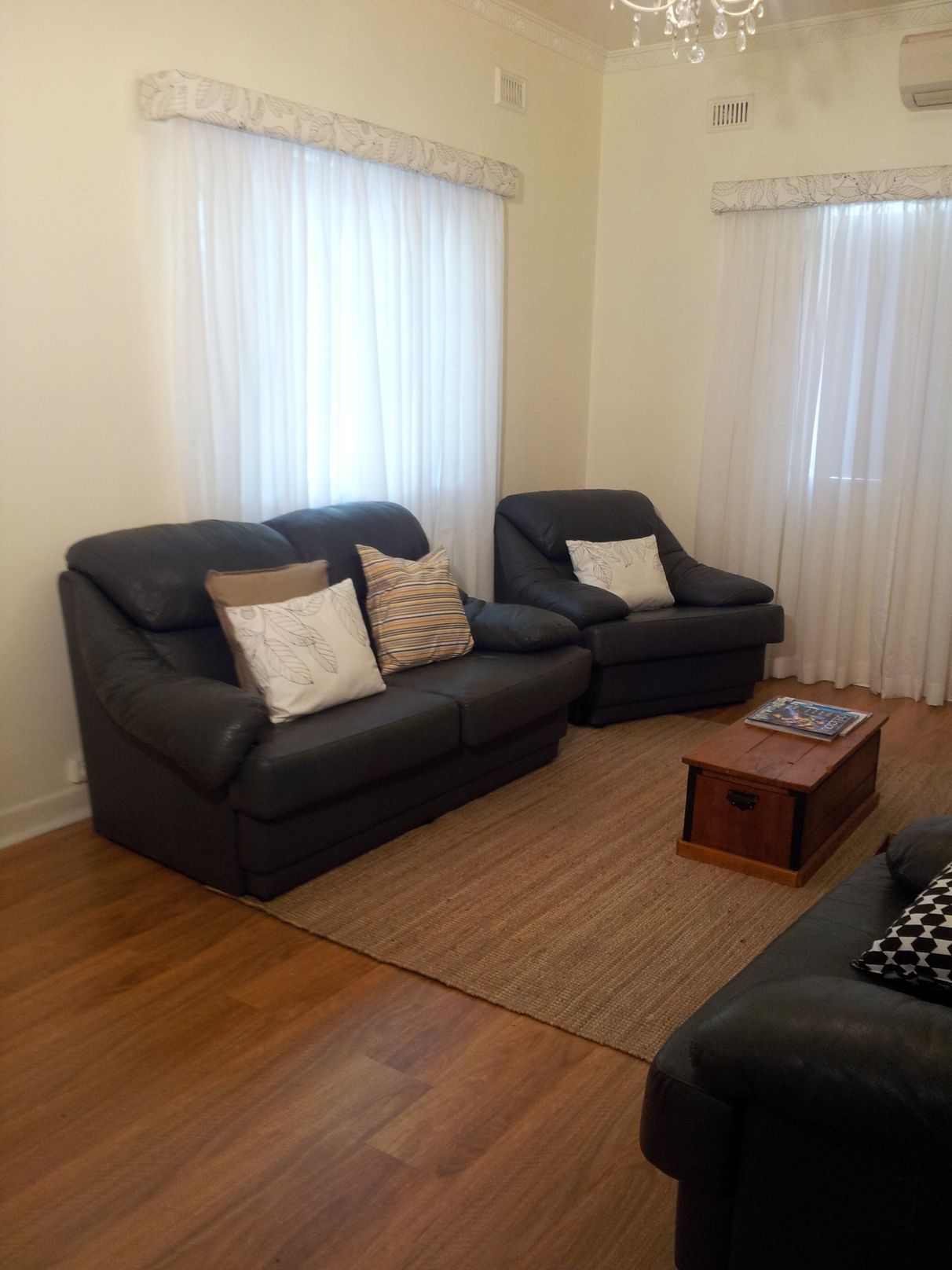 * Cosy lounge room with wood combustion heater and split system air conditioner