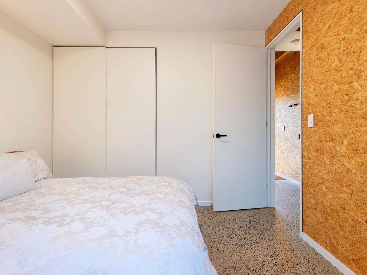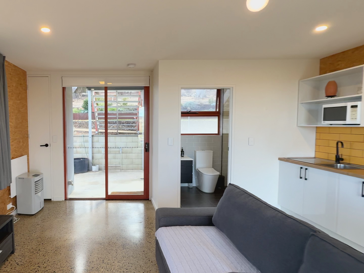 2. Separate Studio space & / or bedroom on the ground floor functions as a self contained, open plan space with ensuite bathroom and kitchenette (hotplate, sink, fridge extensive cupboards /drawers). This is the perfect space for a home office (with data points directly linking to NBN, and a coaxial / TV point). It's perfect for accommodating