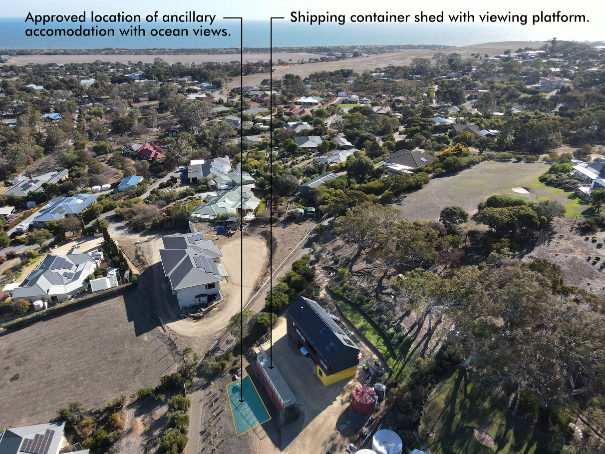 Shipping container shed with 3x double power points, internal and external lights and a flat reinforced concrete roof terrace that takes in those breathtaking views to the sea. Lower flat terrace /parking area which is also suitable for Ancillary Accommodation (approval in place, ask us about this for more info).
