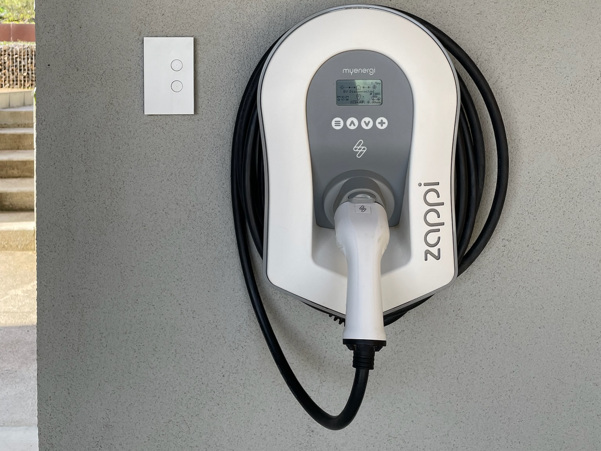 Electrical Vehicle charger: 7kW Zappi tethered with Eco-mode (Solar self-consumption).