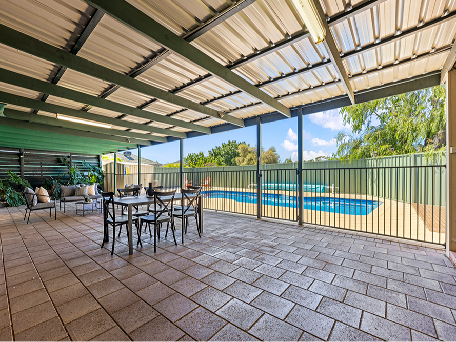 Step outside to discover the true highlight of this property - a spacious undercover entertaining area overlooking the inground fibreglass solar-heated pool. Perfect for hosting gatherings or simply unwinding in privacy, this outdoor oasis is sure to impress.