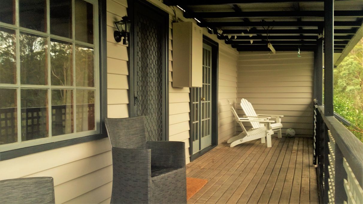 The kitchens back door that leads you out to a covered porch area that looks onto your bush land which is perfect for watching the local wildlife with a morning cuppa or enjoying a drink at the end of a long day.