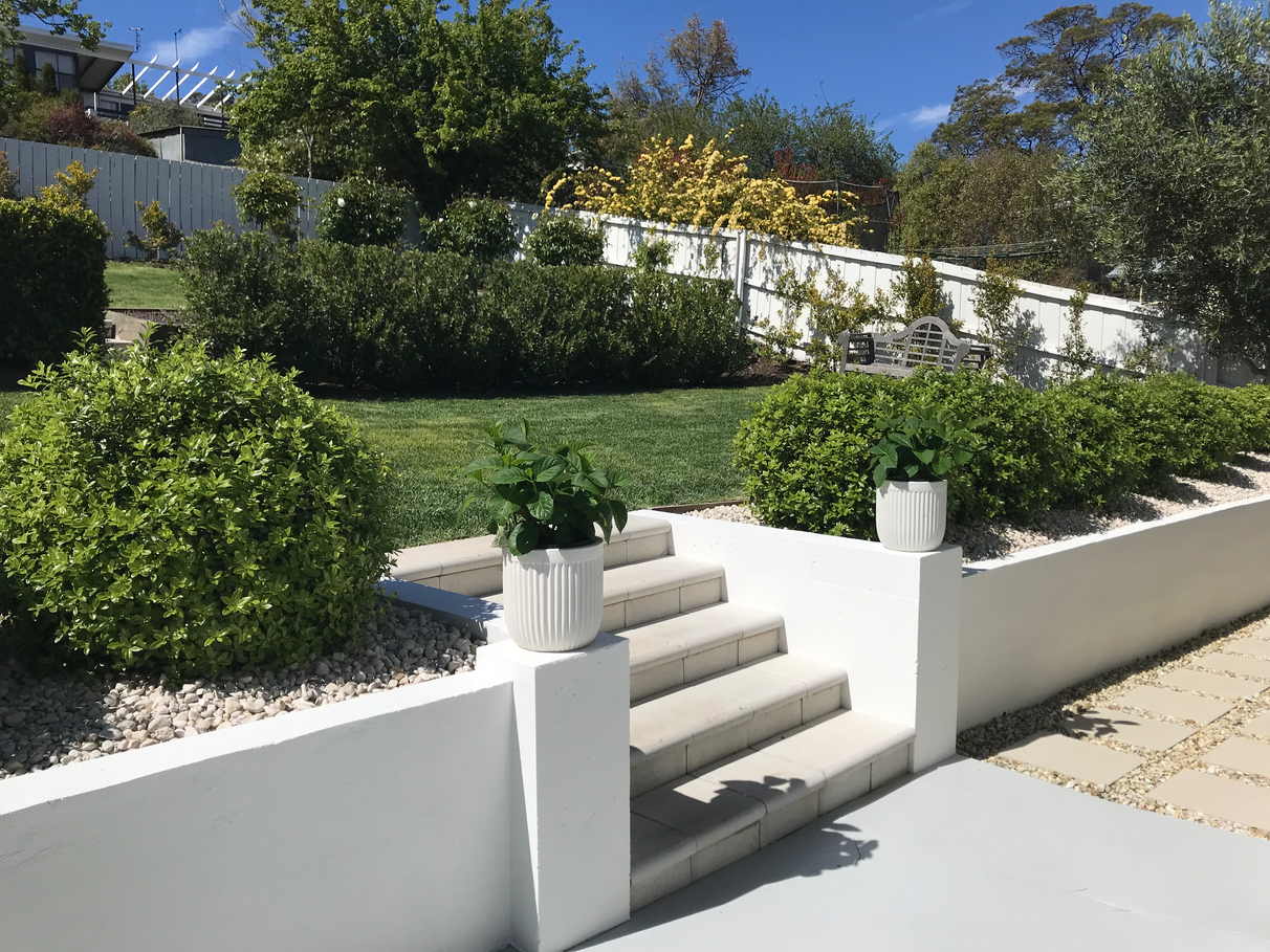- Landscaping incl paved paths, lawns, hedges, rose gardens - front and back