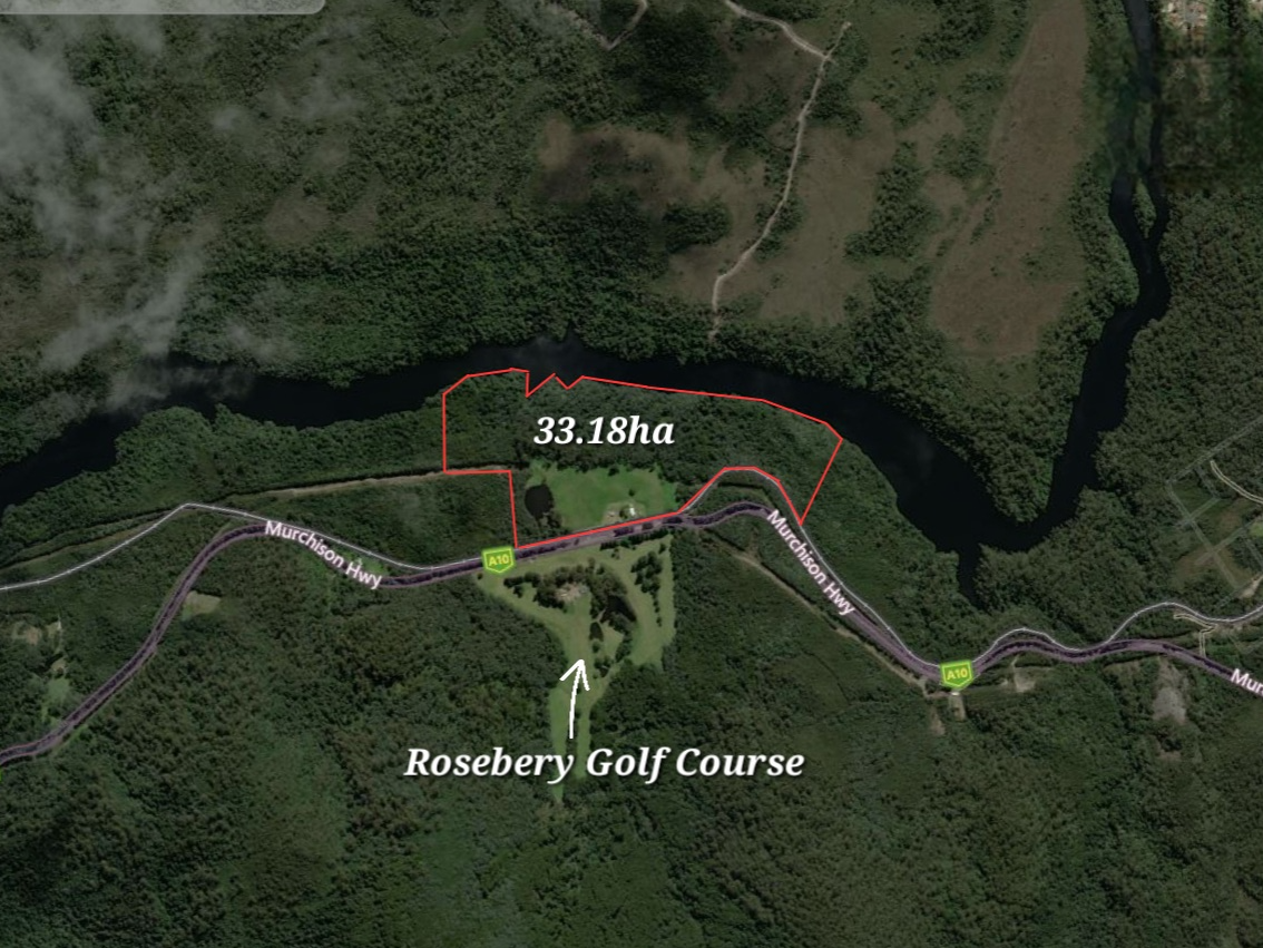 The property's northern boundary is the Pieman River, and adjacent to the southern boundary is the Rosebery Golf Course.