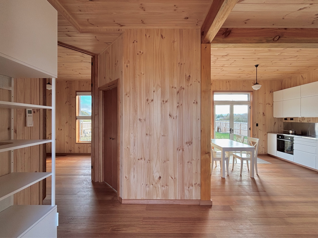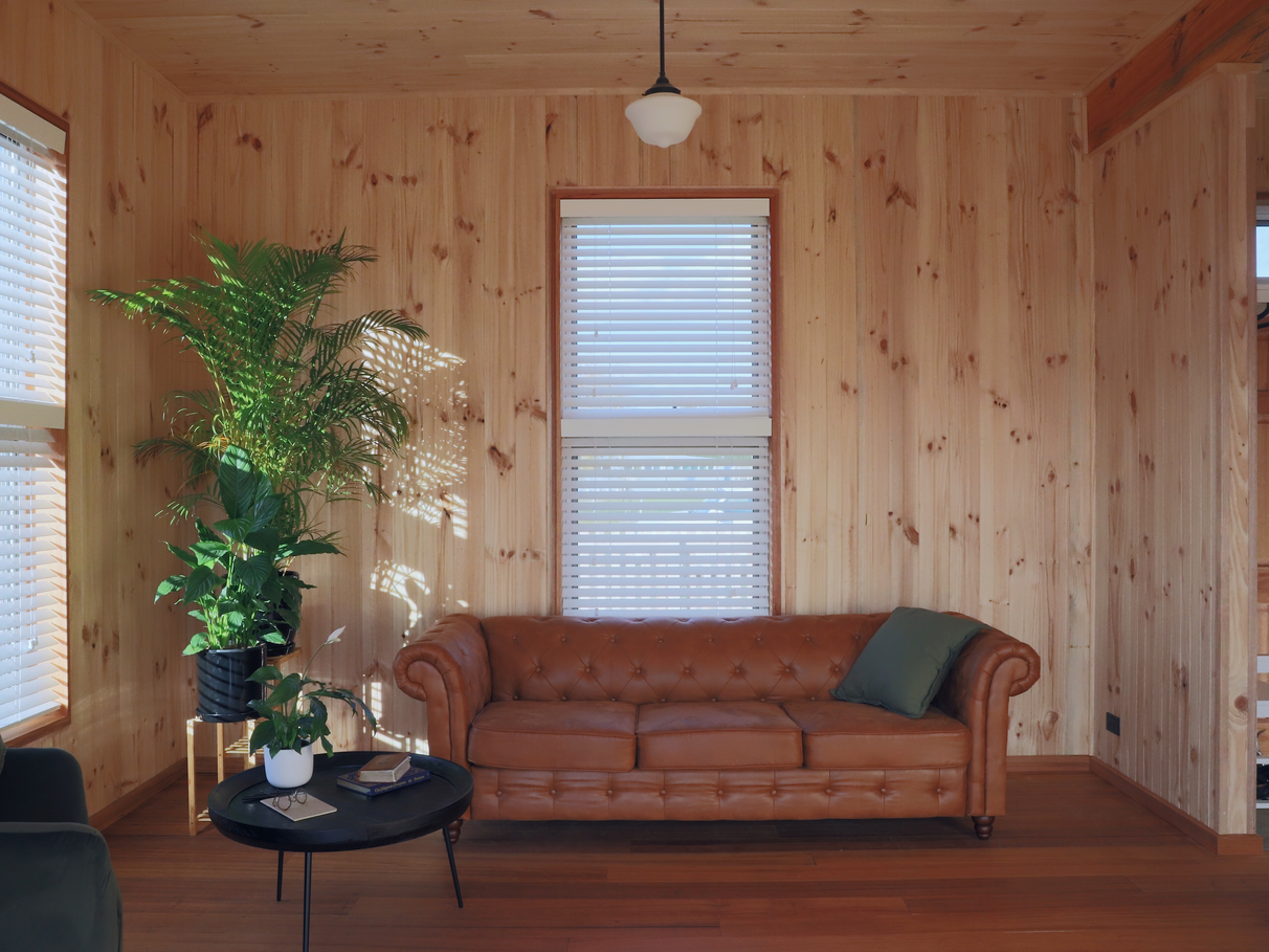 Utilising all natural materials throughout and completely avoiding synthetic paints or treatments, the interior represents a benchmark in occupant health and comfort. Breathable walls maintain optimum relative humidity, air quality and temperature. No microplastics emitting carpets, no off-gassing vinyl or paints.