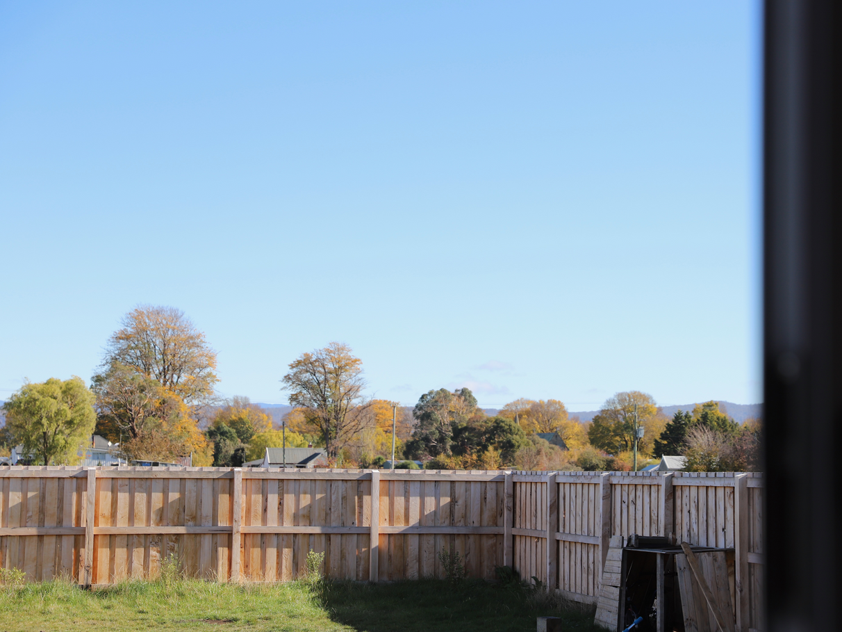 The property frontage is delineated by a delightful macrocarpa picket fence, rising to a higher solid fence at the rear, enabling privacy while preserving pleasant views to the surrounding trees and hills.