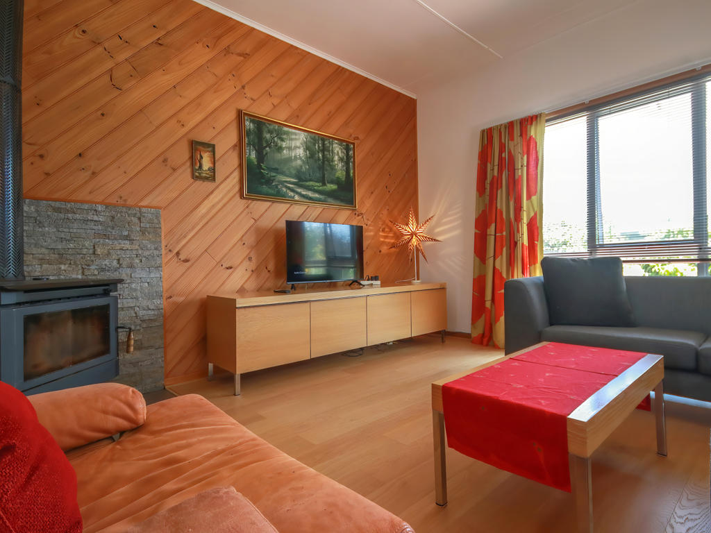 From the living room you can see birds feeding on nature's volunteer flowers as they reside in native plants in a garden. Here is also a fireplace to enjoy in winter time.