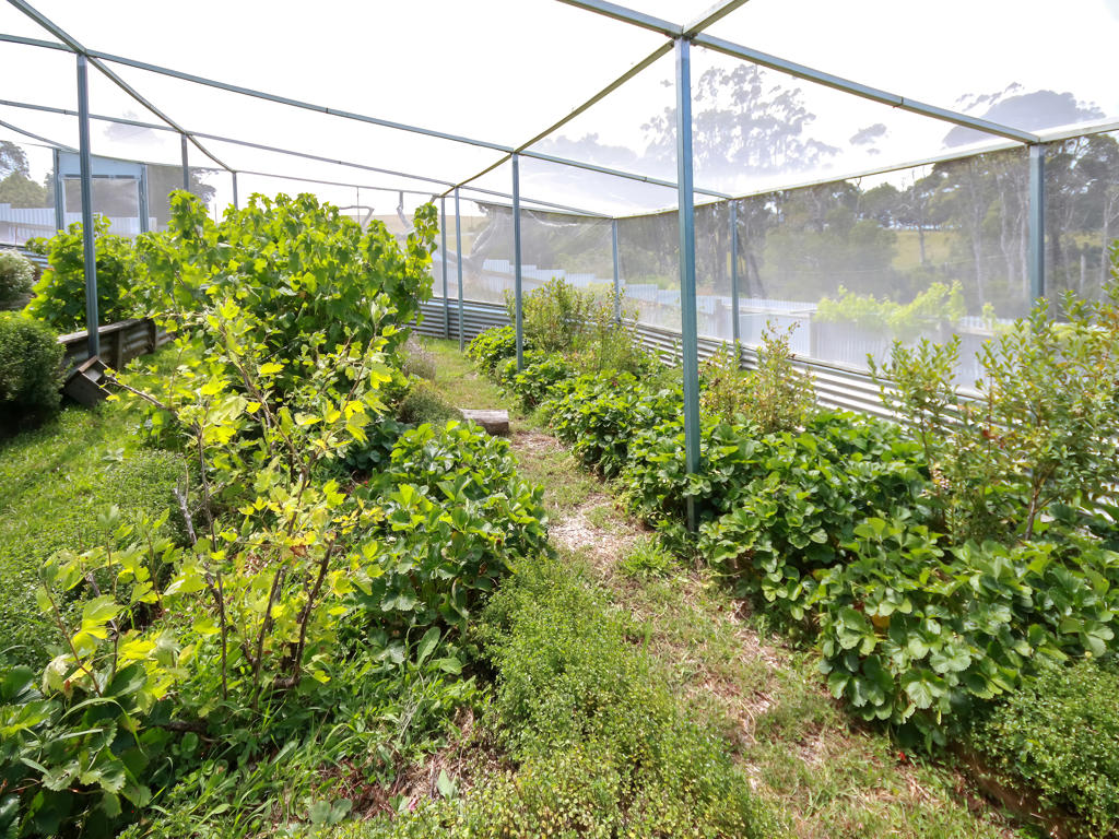 patch (strawberries, blueberries, black currents, gooseberries, asparagus) in the enclosed area. Added IBC tanks provide extra 6000 litres of