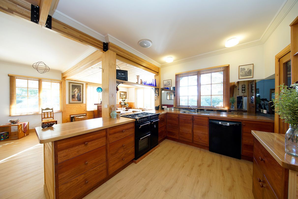 - Gorgeous, country style timber kitchen with modern, quality black appliances including 900mm, Bellings 900 antique-style, triple door electric ovens and gas cooktop and SMEG dishwasher, plus a huge, fully equipped butler’s pantry with sinks and a unique, walk-in cool room - Chef heaven!