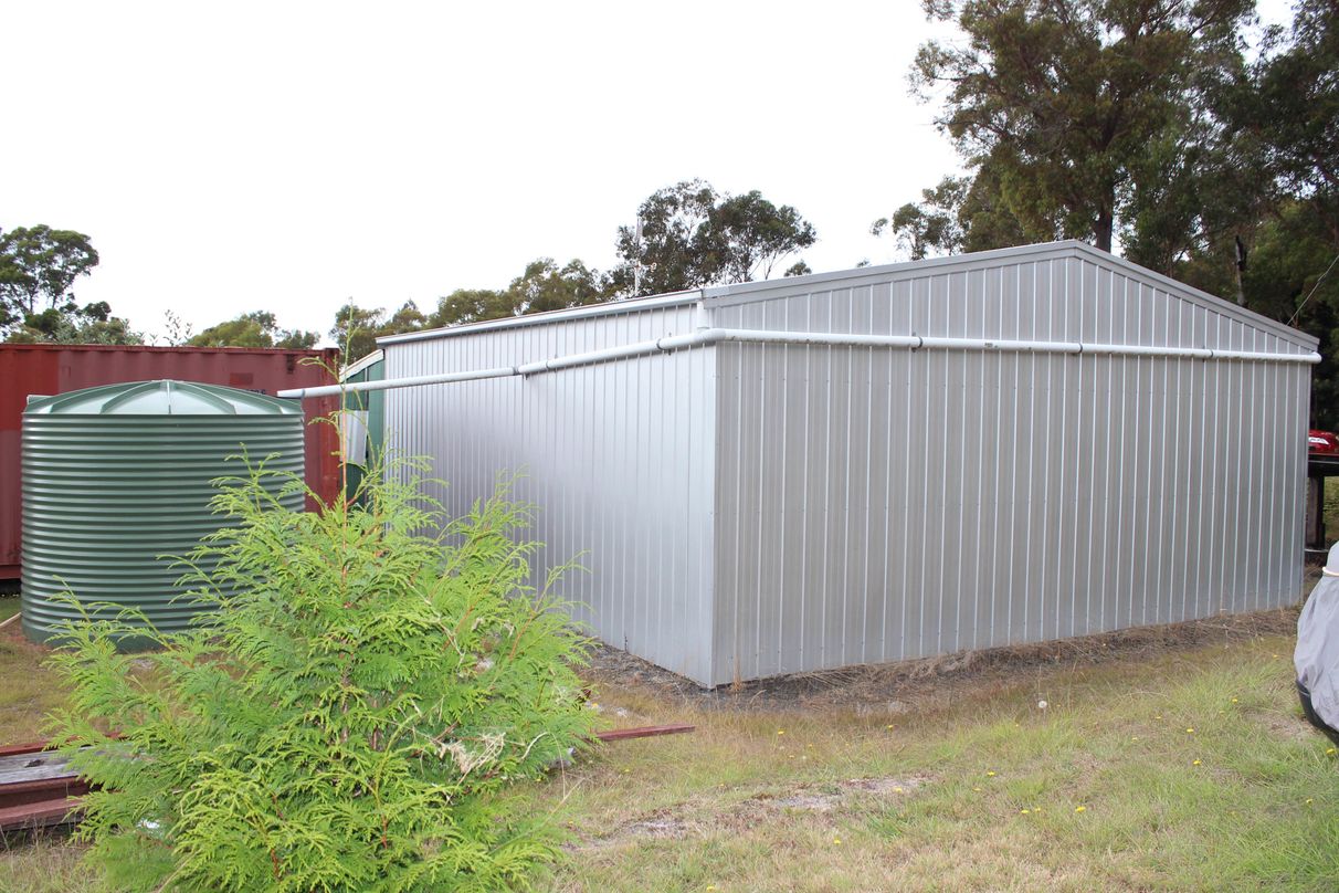 Large concrete floored shed 9x8 with power and 9x3 concrete apron. Double car port. 2 x 20 foot containers. Vehicle servicing ramp.