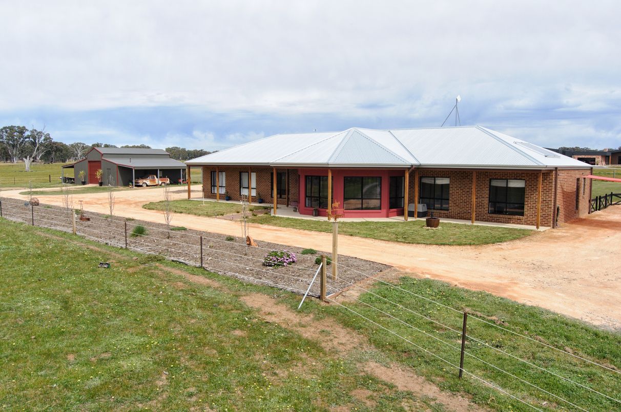 Escape to Axedale and secure your very own piece of paradise! This 20.9 acres of peaceful and picturesque lifestyle property showcases a modern brick residence with a long verandah along the front cleverly constructed to take advantage of the bushland surrounding views. Boasting an immaculate facade, the well-kept home sports a discerning colour pallete and high ceilings complemented polished wooden floors and large windows emphasising space and light throughout.