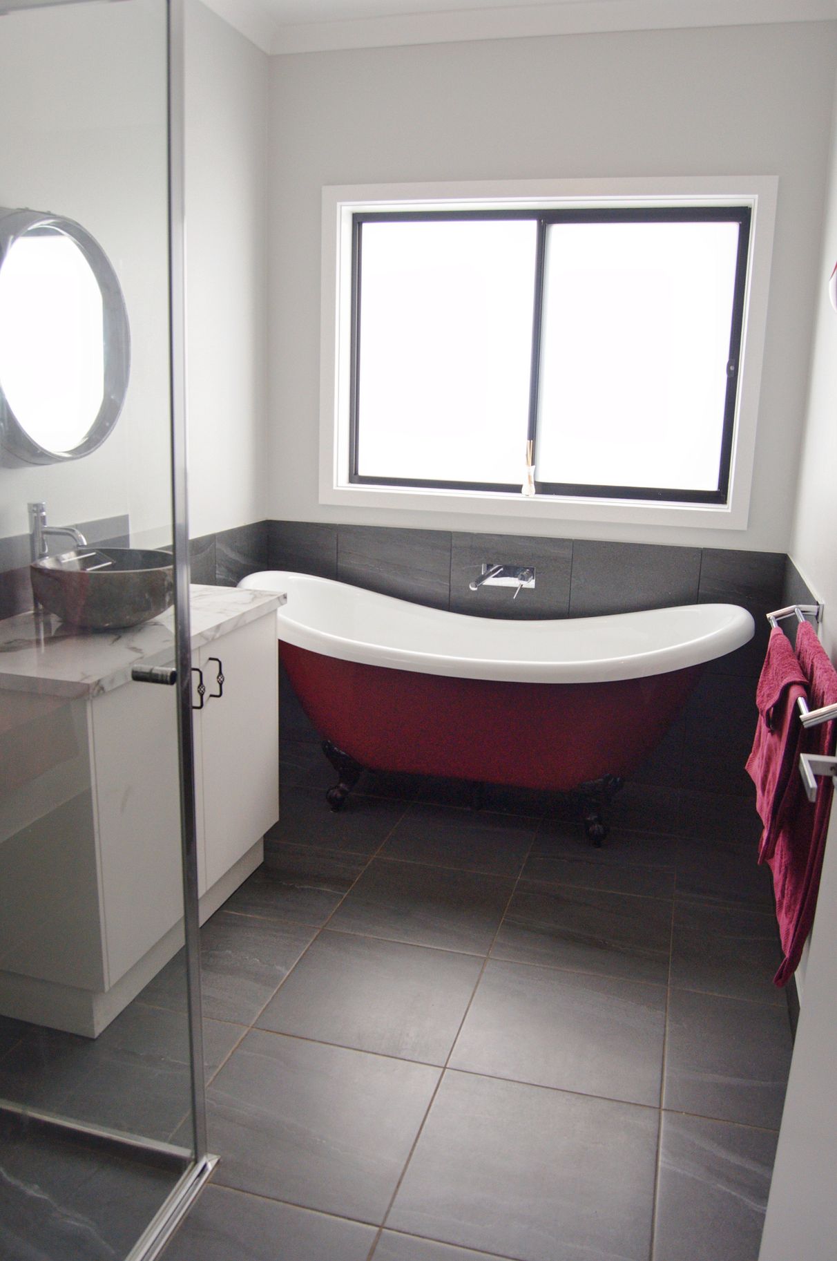 Light-filled central bathroom showcasing a beautiful Clawfoot bath