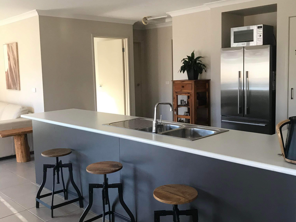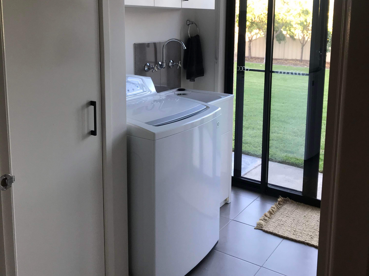 Open plan light filled living, dining and kitchen zones are the heart of the home. Providing all year comfort with evaporative cooling, split system and hydronic floor heating.