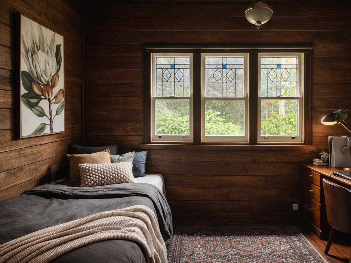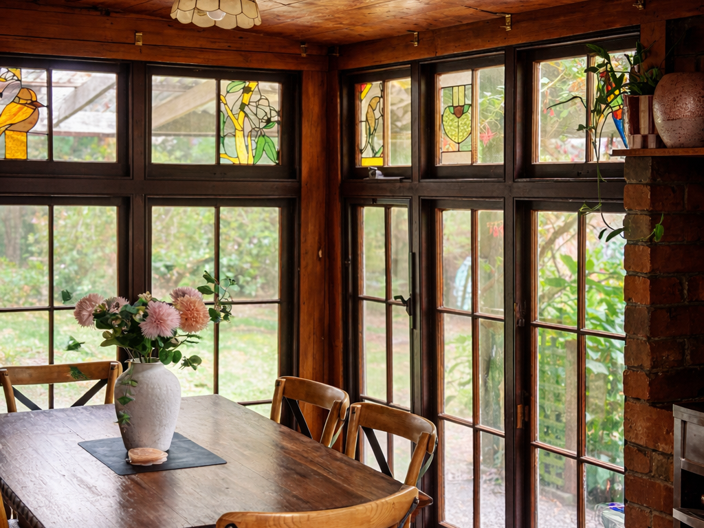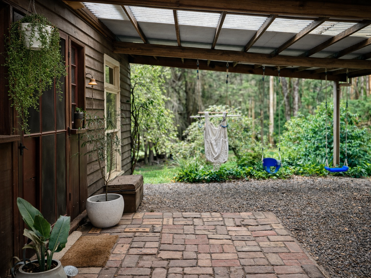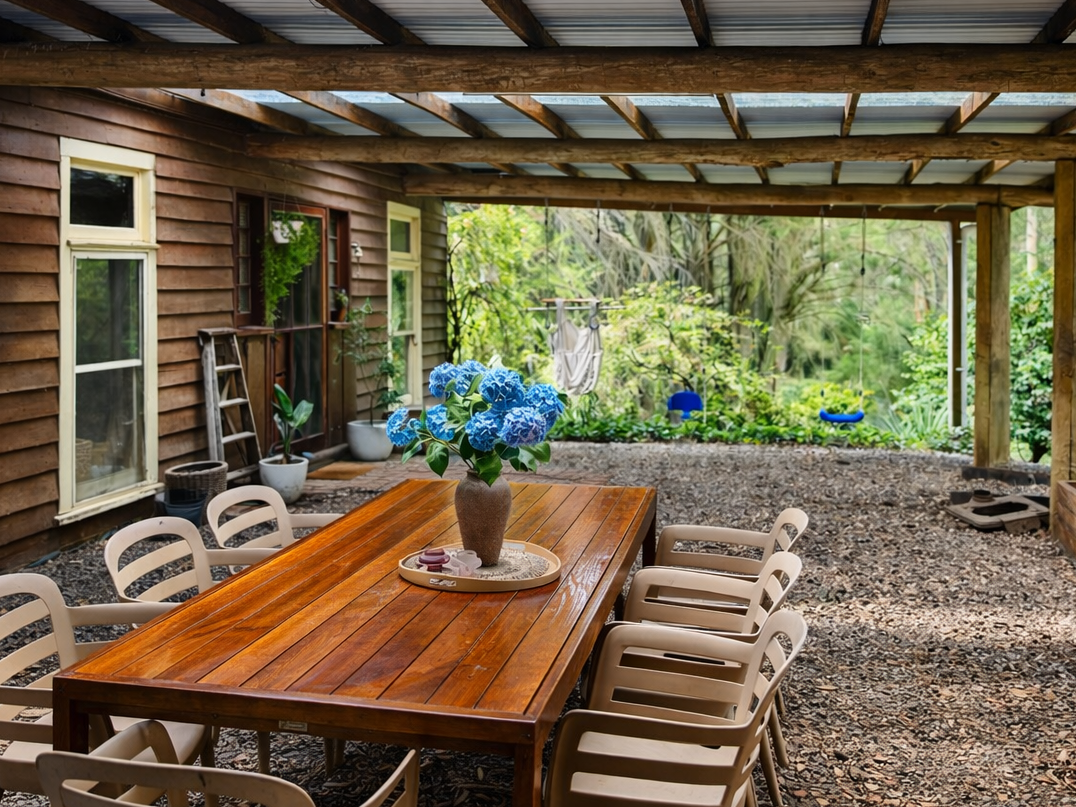 Set on 1.2 hectares (3 acres) of stunning rainforest, this beautiful century-old log and brick home features original hand-split timbers, charming leadlight windows and a warm, inviting fireplace that creates a magical atmosphere throughout the home.