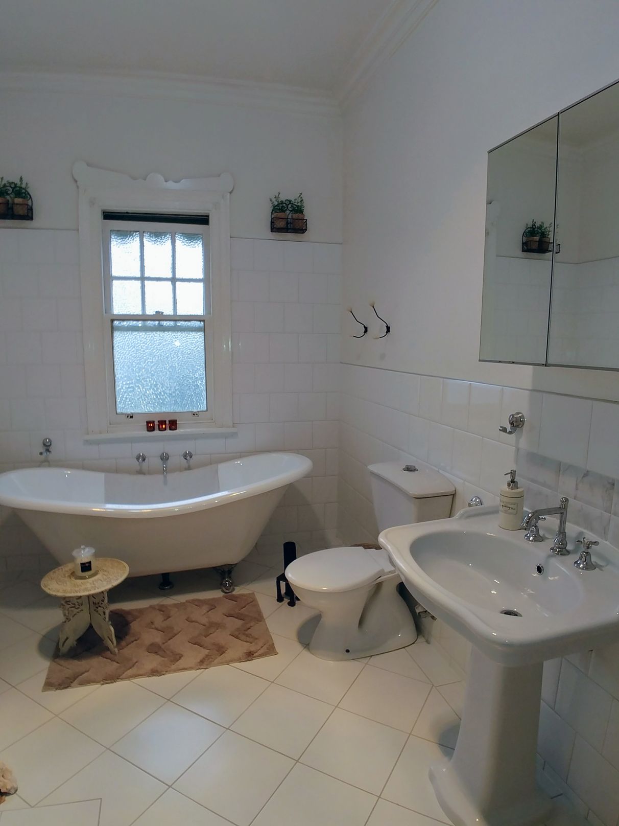 Three spacious bedrooms with built-in robes and the option to utilise the front Lounge as a fourth bedroom. Serviced by a luxurious family bathroom with a claw-foot bathtub, plus a second toilet and a large recently renovated internal laundry.