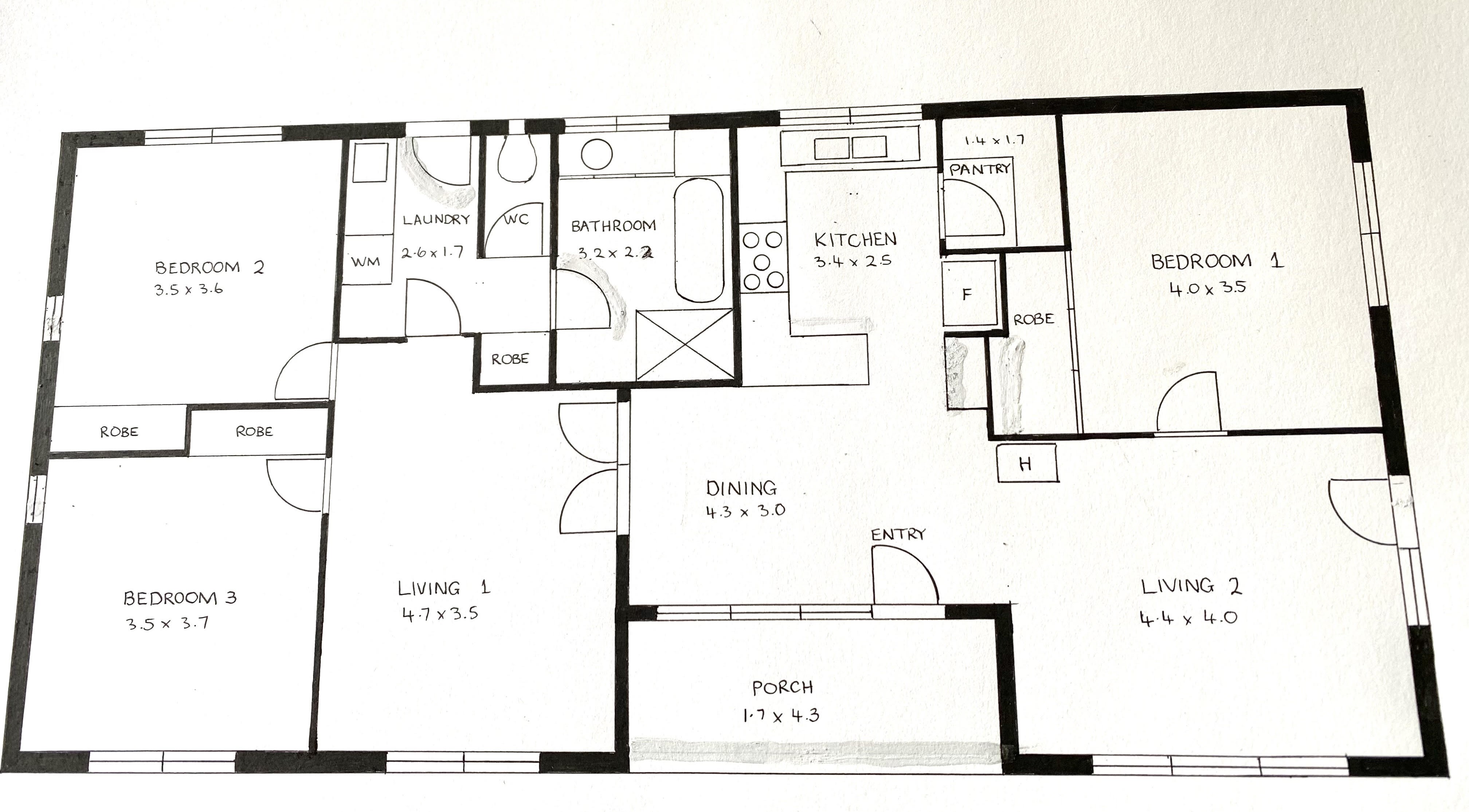 There are two living areas - one with double doors offering separation from the other end of the house, giving privacy for main bedroom. The three bedrooms are of a good size and all have built in robes.