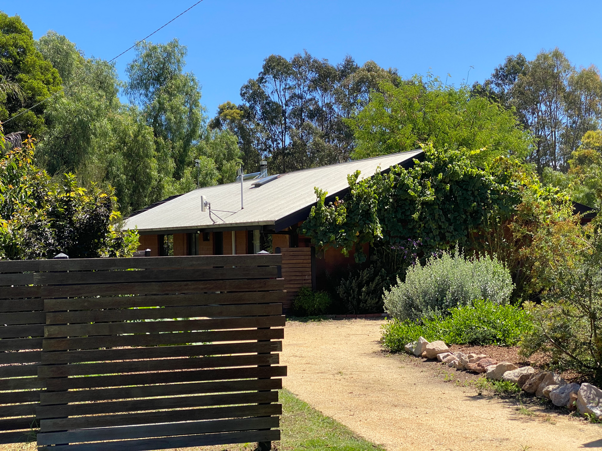 Outside offers over 2400sqm of land with town water, 10,000L water tank and a small dam for water security and watering the spacious gardens, vegie patch and irrigated orchard. The dam has an abundance of wildlife attracting ducks, cormorants and herons chasing the many frog species with their enchanting frog song. There is also 'Chook Cottage' (the chook pen), a glasshouse, a covered washing line area and woodshed.