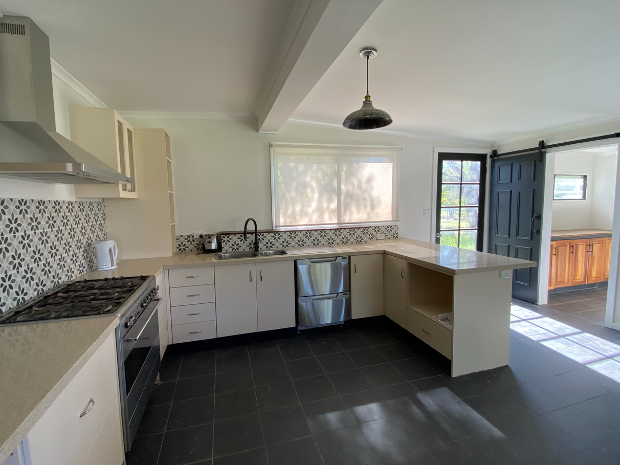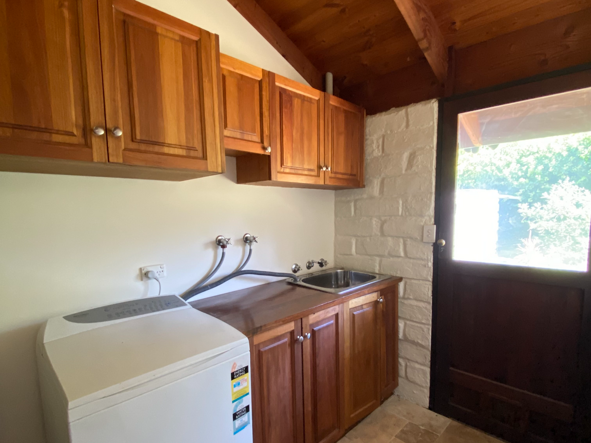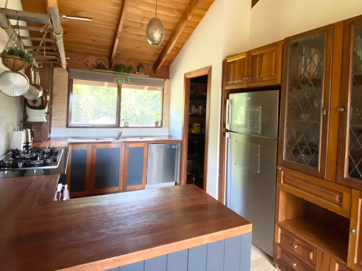 The renovated Balinese style bathroom offers freestanding bath and separate shower with unique shelf storage for towels, and separate toilet. In the kitchen there is a 90cm Miele LPG gas cooktop with electric oven, Asko dishwasher, ironbark benchtops and plenty of storage with a walk in pantry and custom made leadlight cabinets.