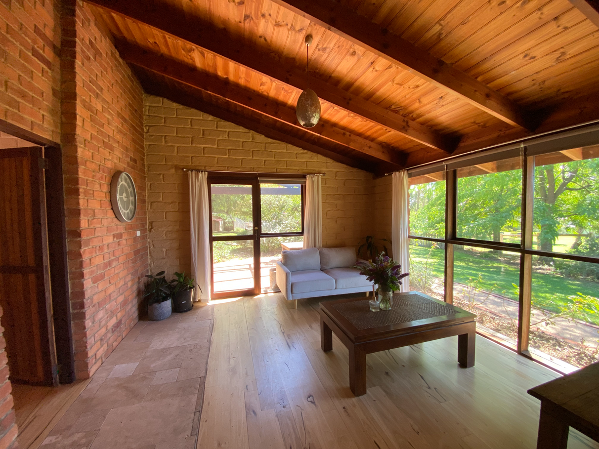 This mudbrick character home oozes with rustic charm, welcoming you with it's warmth and comfort from the moment you walk in. It has a natural feel, boasting timber vaulted ceilings, exposed brick feature walls, solid hardwood floorboards, handmade ironbark and cedar doors and travertine stone tiled floors.