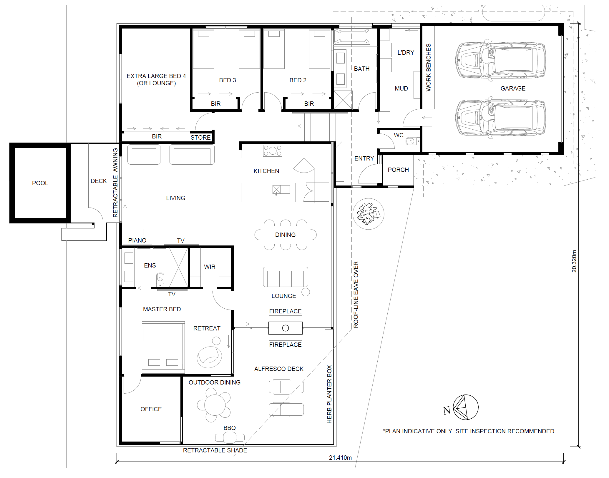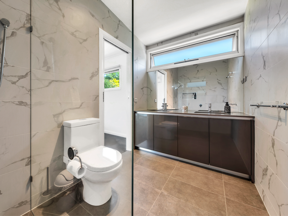 The living area flows to another deck area with heated pool, including an innovative, retractable roof canopy (doubling as a sun shade & low maintenance pool cover). Sit back in the pool soaking up the scenery, whilst enjoying the Bluetooth ceiling speakers.