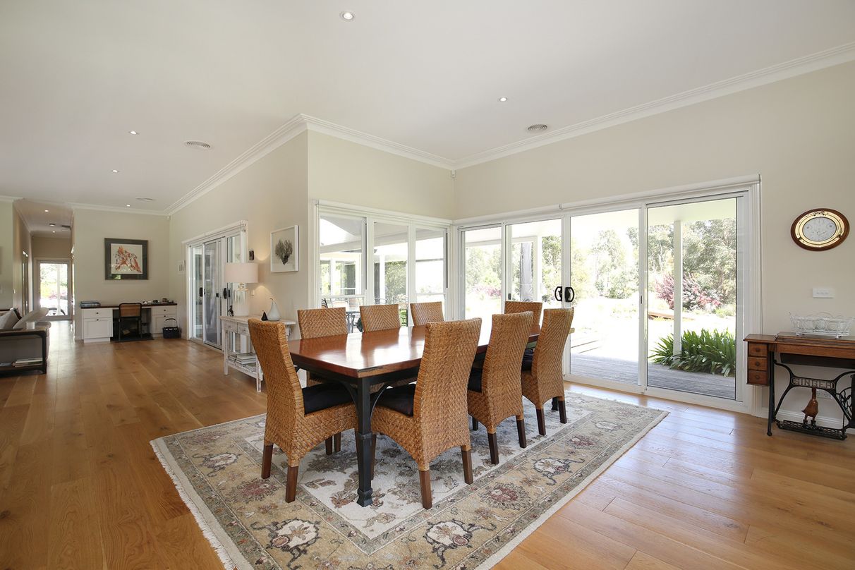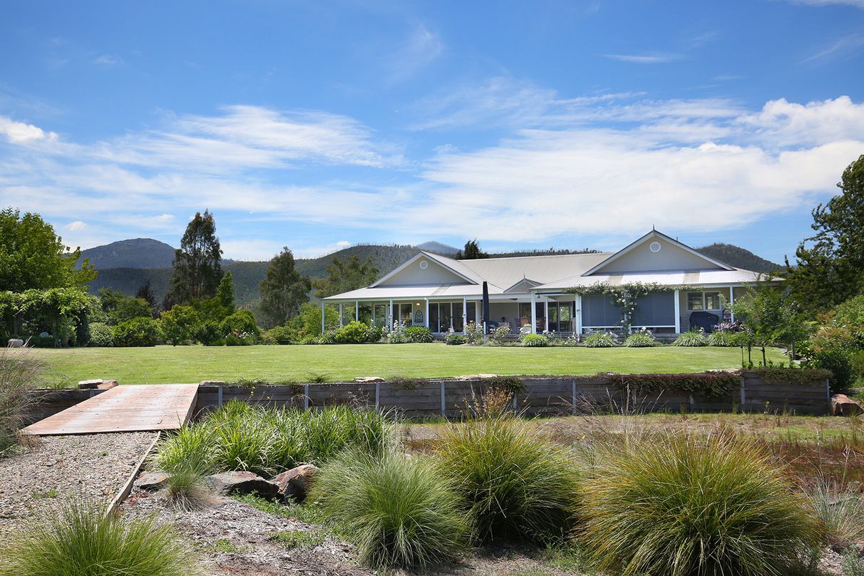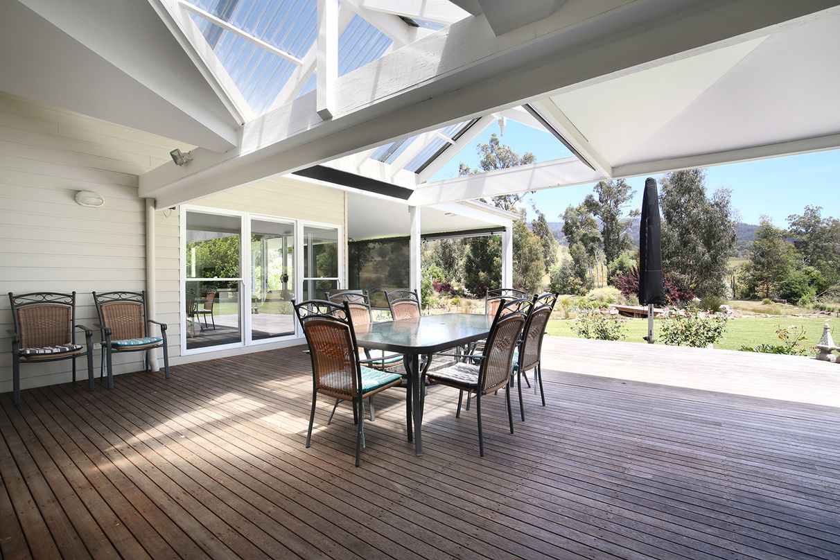 4 Bedroom “Australian Homestead” style secluded family home nestled in the Acheron valley with spectacular uninterrupted views from all aspects to surrounding mountain ranges. Miele & Gaggenau Kitchen, Dining-Living area with open fire.