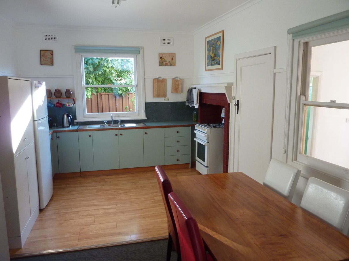 The spacious eat-in kitchen has a freestanding gas stove and Vulcan gas space heater with rear vent into hallway. The four main rooms are 2.8m high and all have ceiling fans. New carpet has been laid in the front lounge room and hallway.