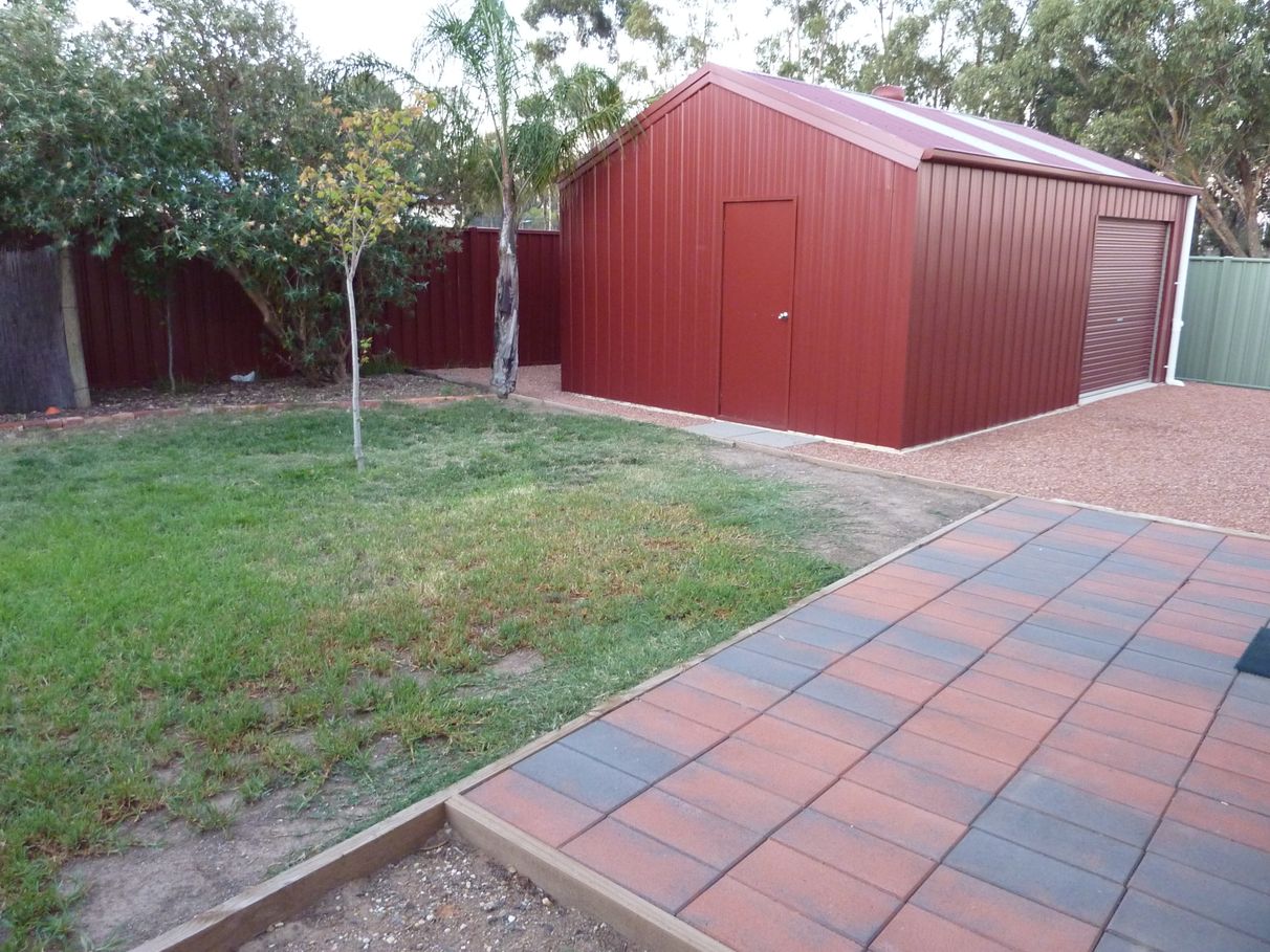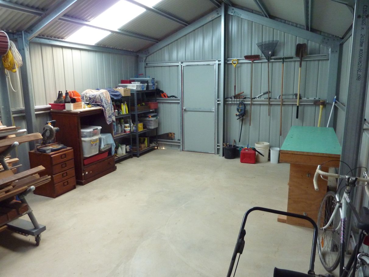A new 6.5 by 4.5 metre colourbond shed with 22 degree pitch roof and concrete slab has been built at the rear, with a rollerdoor and spinaway fan.