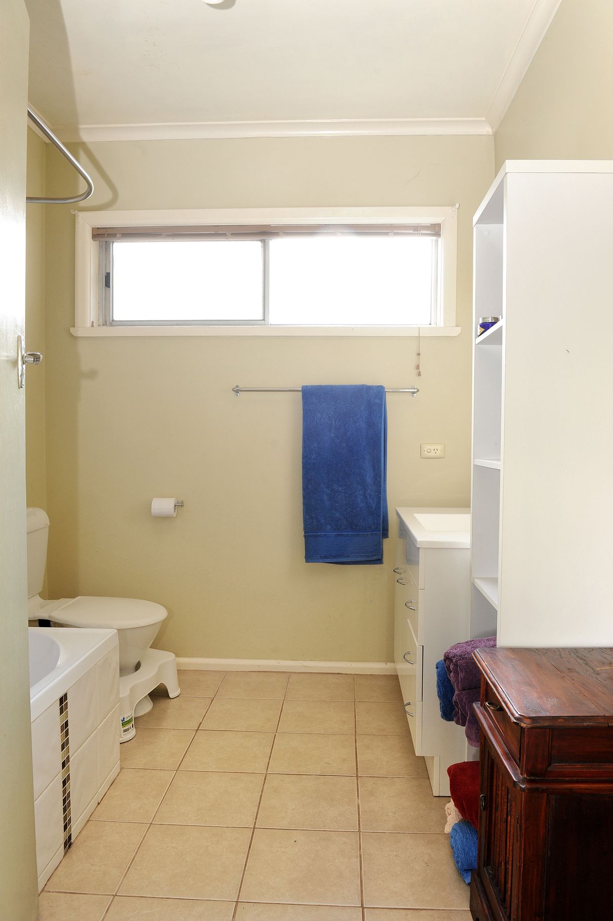 Main living area has good size bedrooms, study, spacious living and dining area, gas heating and air conditioning, with full size kitchen and bathroom including bath and toilet separate.