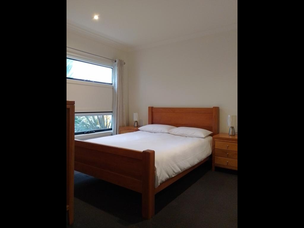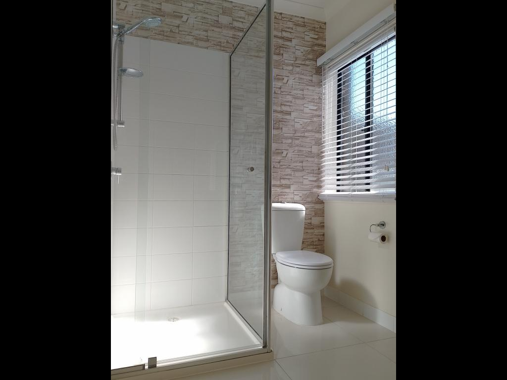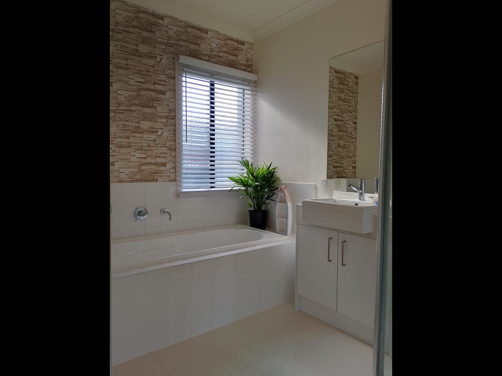 Both bathrooms come complete with Caesarstone benchtops, large wall mirrors and built-in cabinets, timber venetian blinds, aluminium shower frames and porcelain floor tiles