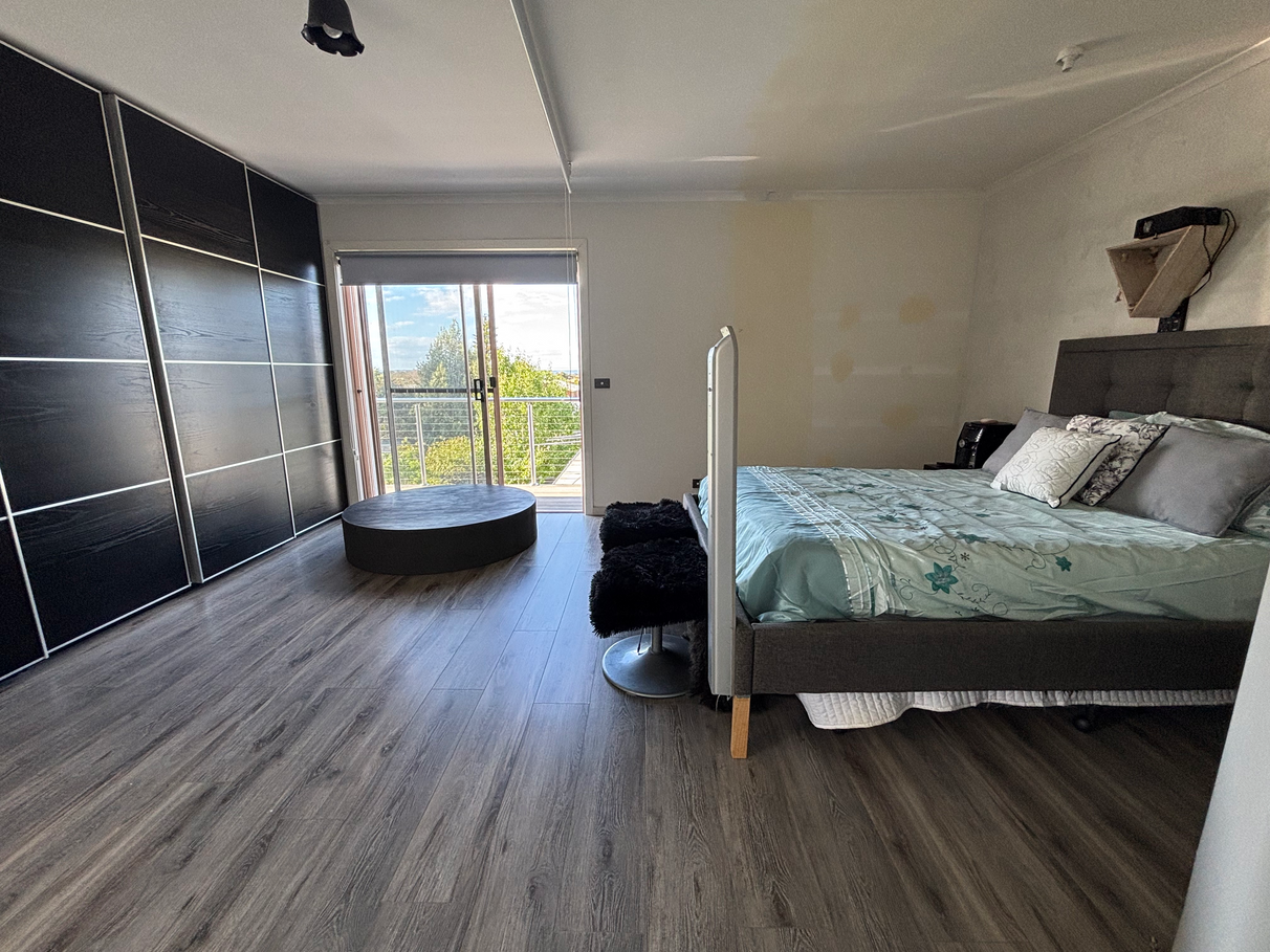 The master bedroom suite is a true statement of space and style, complete with wall-to-wall built-in robes, an ensuite with spa bath, to relax and unwind and sliding glass doors opening onto an expansive entertainer’s deck. Here, you can unwind, entertain, or simply breathe in the ocean air and take in the serene sea views.