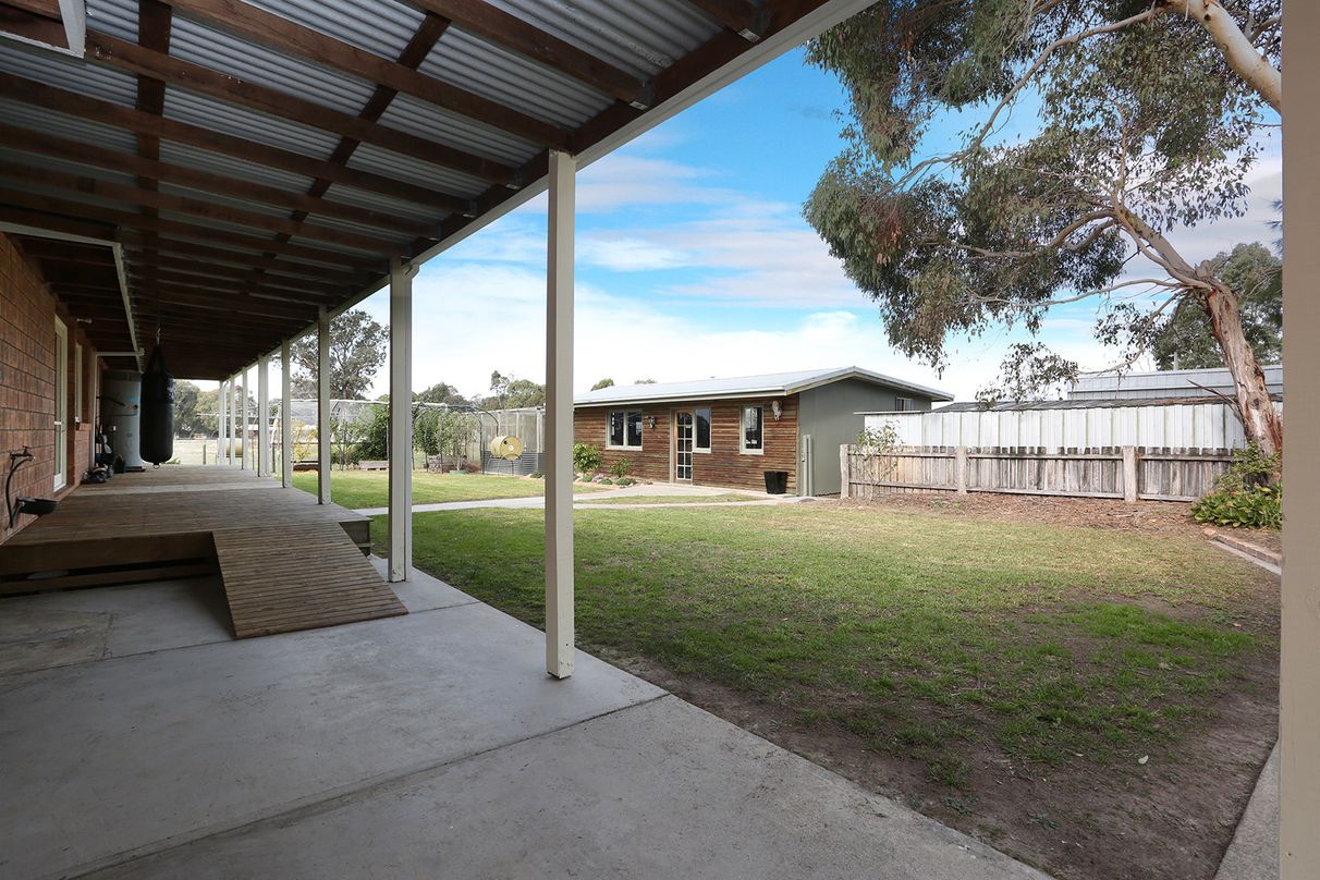 A wide decked veranda runs one side, overlooking the huge enclosed house-block, with lawned backyard. On the other, a large decked alfresco is tucked in between two internal living zones. Plus there's a huge additional bungalow/ rumpus games room separated from the house offering the perfect teenage retreat or man cave!