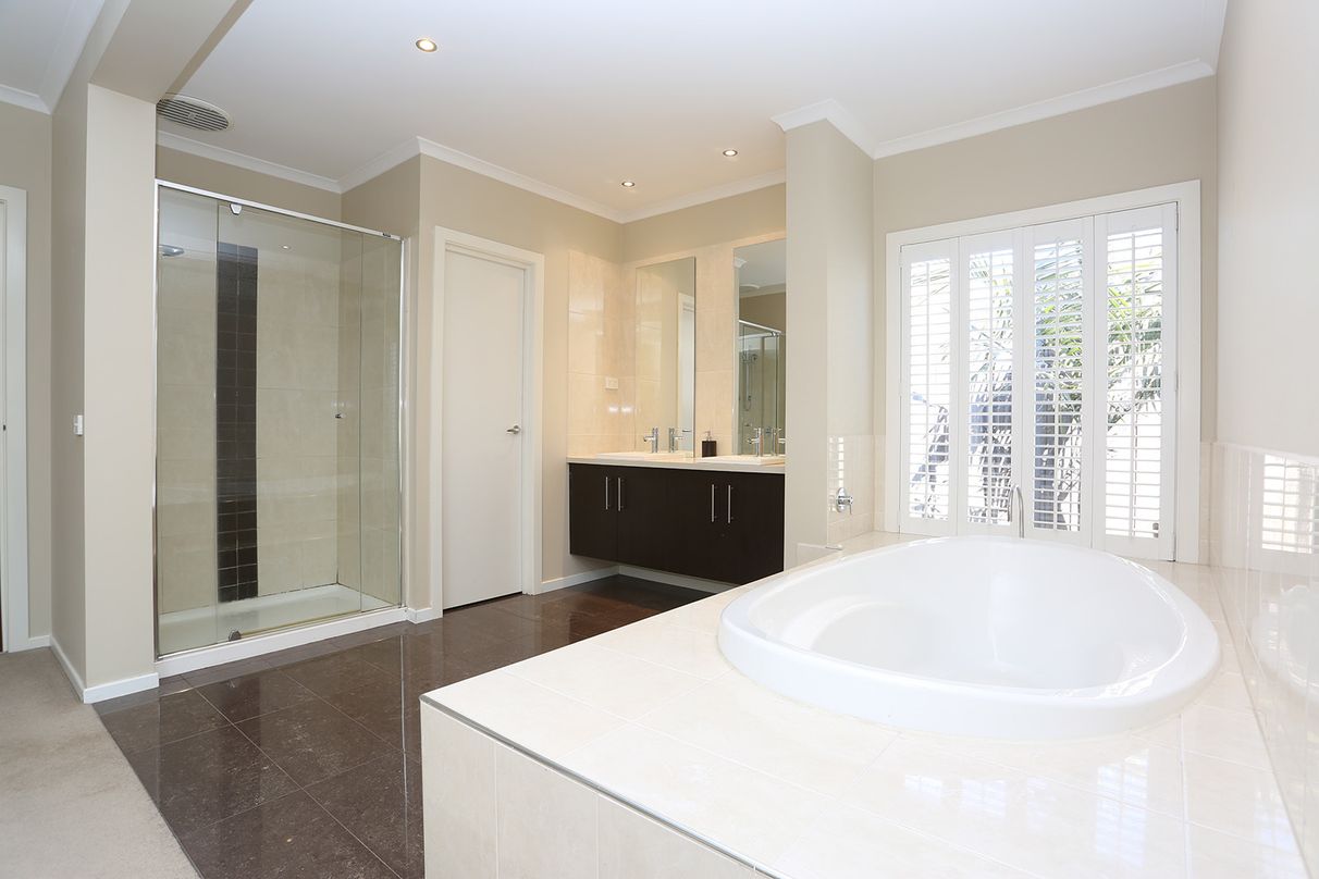 - Deluxe master suite with hallway entry, 2 enormous built-in robes and sensational ensuite with an oversize bathtub, twin vanities, shower and separate toilet.