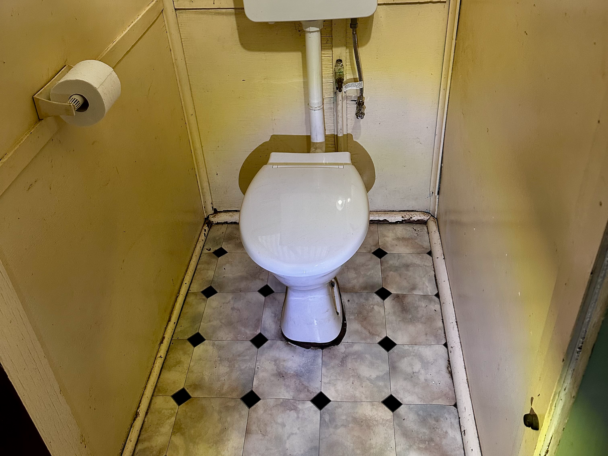 Some issues with the house that potential buyers need to be aware of; The front half of the house is clad with fibro cement which contains asbestos; the septic tank straddles the boundary to the east; there are no fences on the east and west boundaries; the west boundary goes through the two outbuildings to the rear of the property.