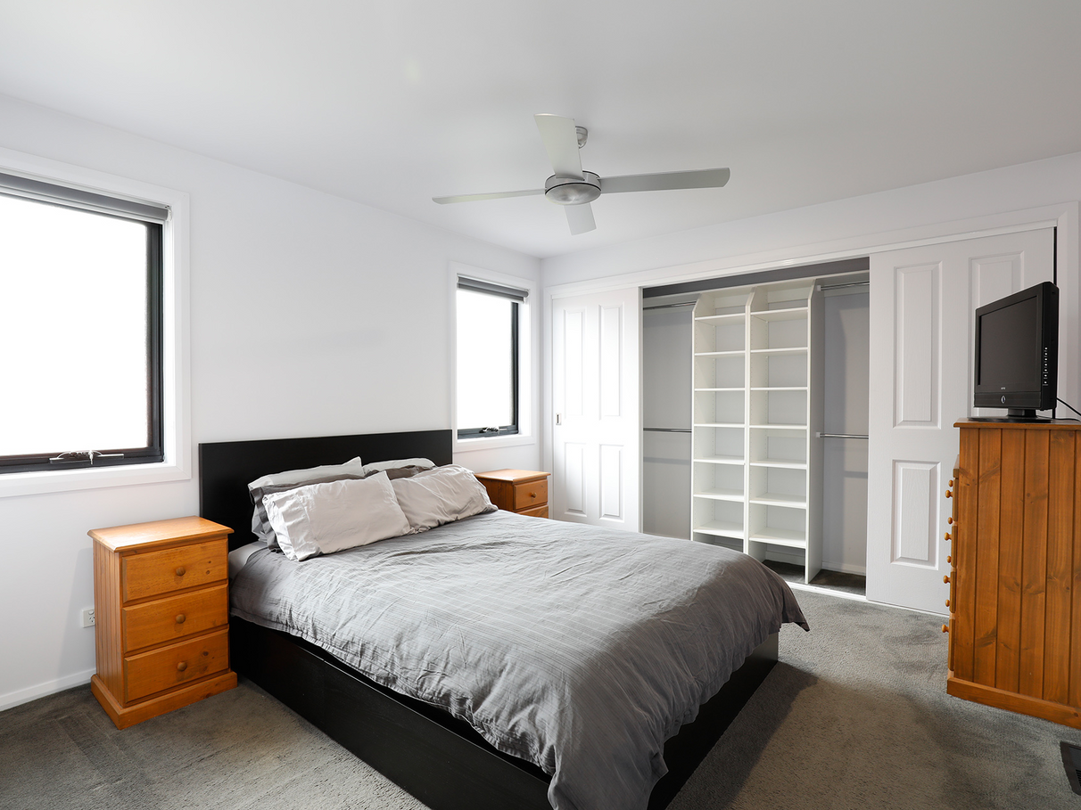 Two well-proportioned bedrooms with closets with generously organized shelves & hanging space