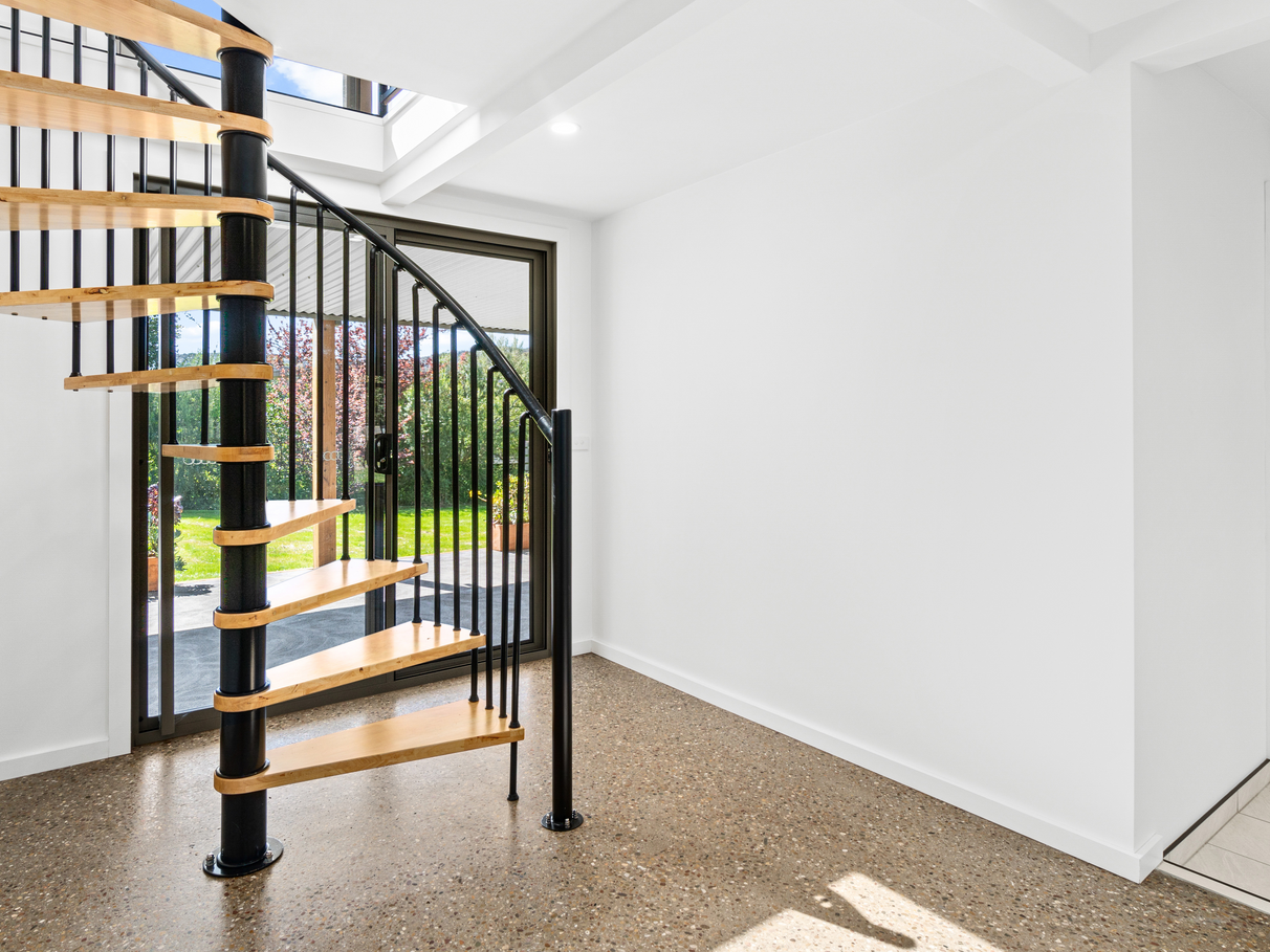 Stackerstone entrance with internal spiral staircase, stainless balastrate & handrail compliment this home.