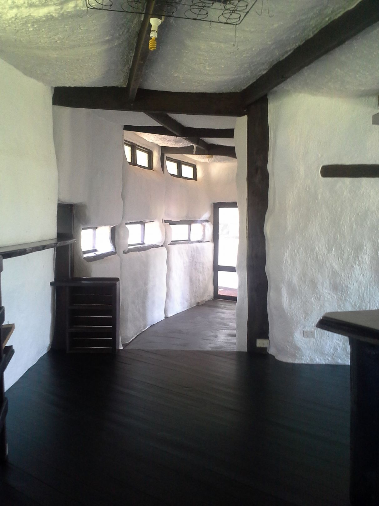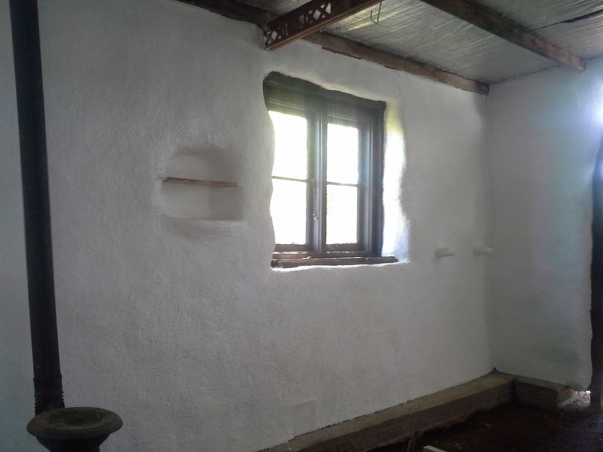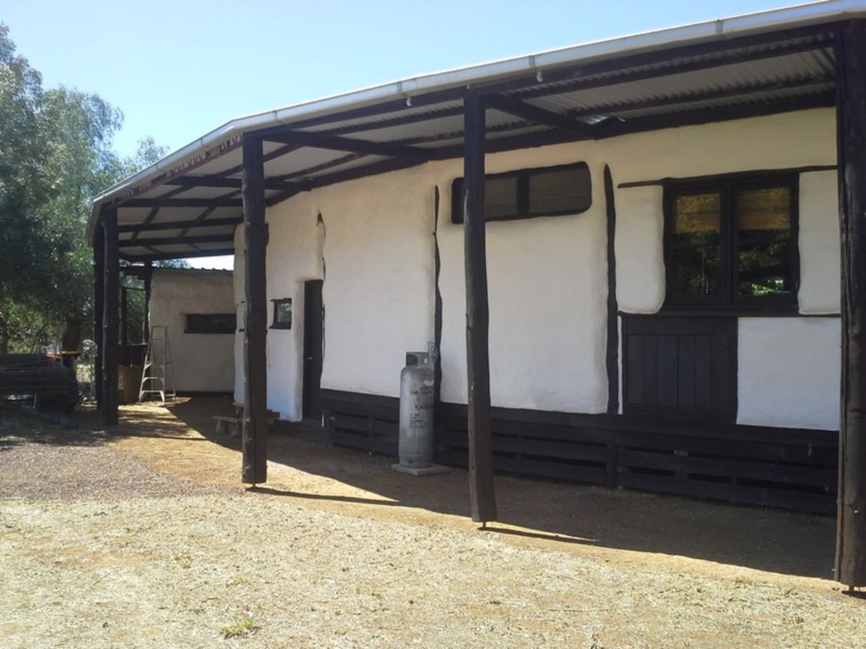 Abundant natural light, excellent cross ventilation, extremely well insulated straw bale, mud + lime rendered walls (R5+), exposed hand crafted, reclaimed timber posts and beams, benches and shelving, split level concrete (bedrooms, hallway) and timber (kitchen, living, wet areas) floors, hand plastered, scalloped, straw + lime, double cavity ceilings (2.3m - 3.2m (R4+)), reclaimed timber casement, louver and panel windows, 7 full length glass, double doors opening onto 4m x 14m (semi-circular) north facing verandah (part zincalume/part laser light) and pergola with deciduous ornamental grape vines.