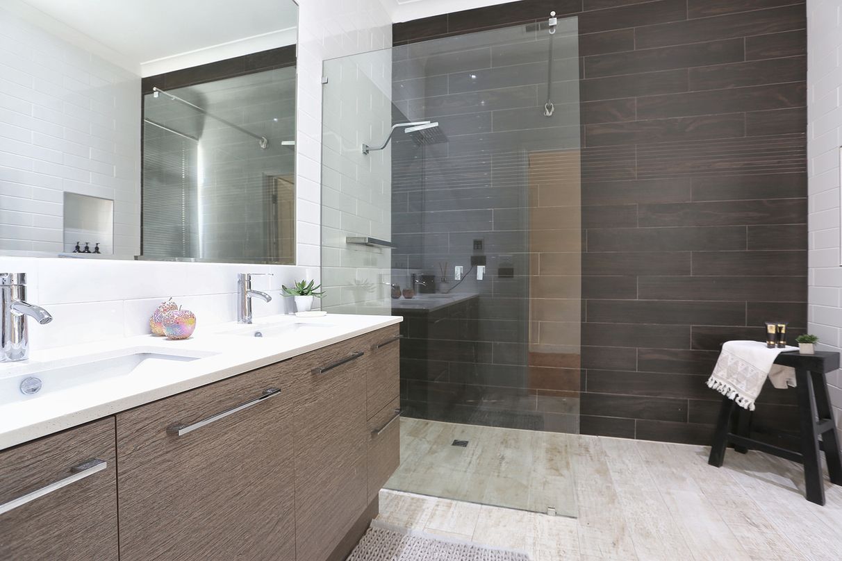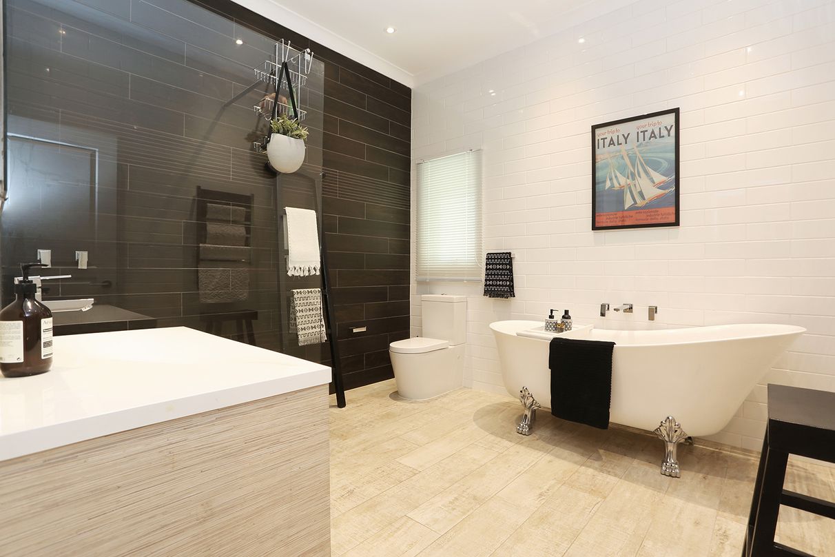 Luxurious floor-to-ceiling subway tiling, stone-top twin vanities, frameless shower, and only the finest in fittings. The enormous family bathroom is just as spectacular, finished in the same design with an addition of a freestanding clawfoot bathtub!