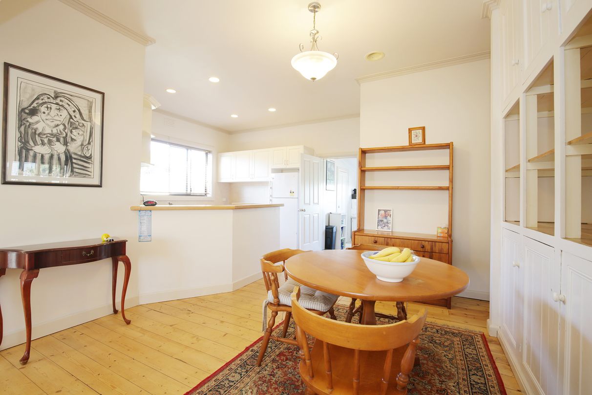 Open plan sunny kitchen-dining area