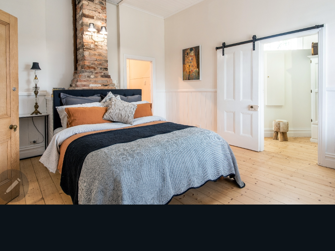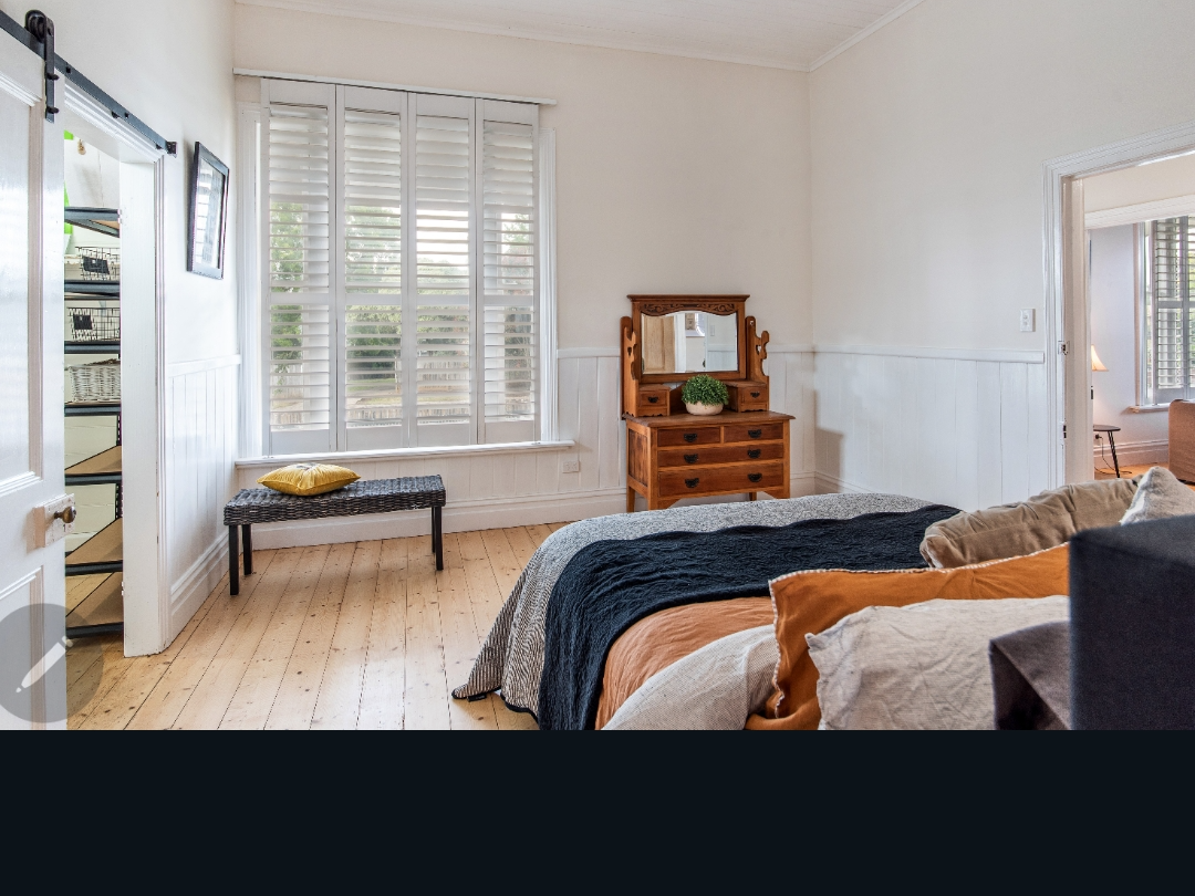 Master. Exposed chimney. Ensuite of massive proportion with a separate toilet room. Walk in robe and laundry with outside access.
