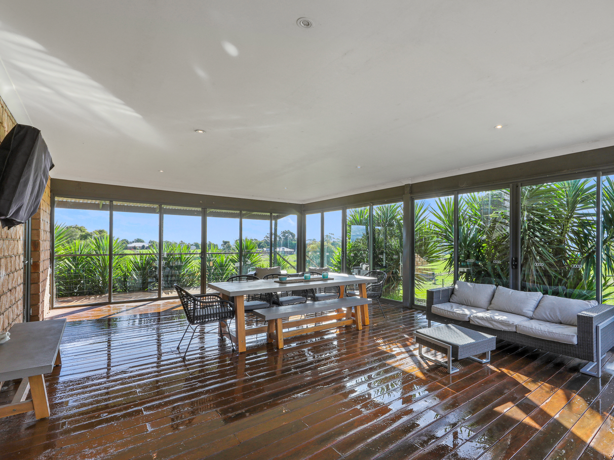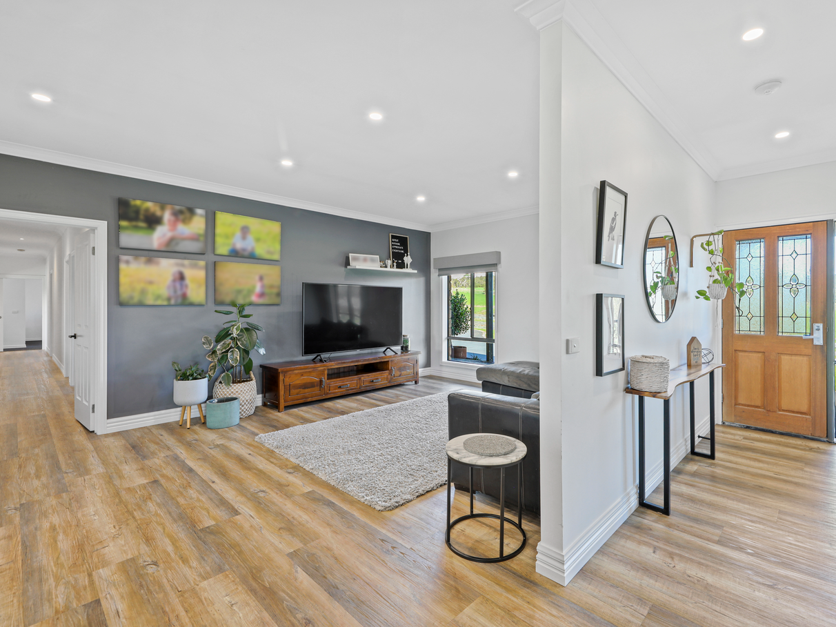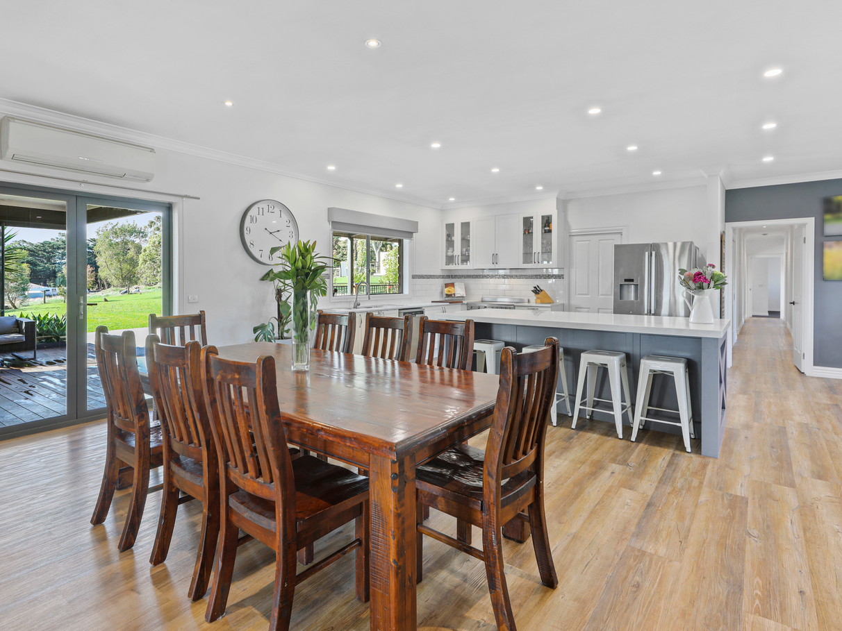 The wrap around verandah culminates in a supersized enclosed alfresco that allows full view of the solar-heated in-ground pool and offers an all year round, four season entertainment area.