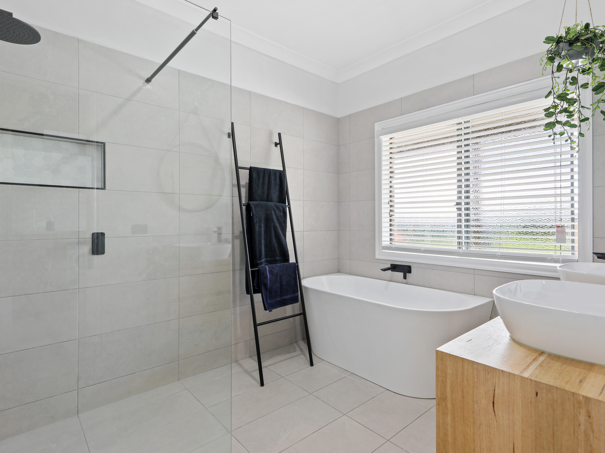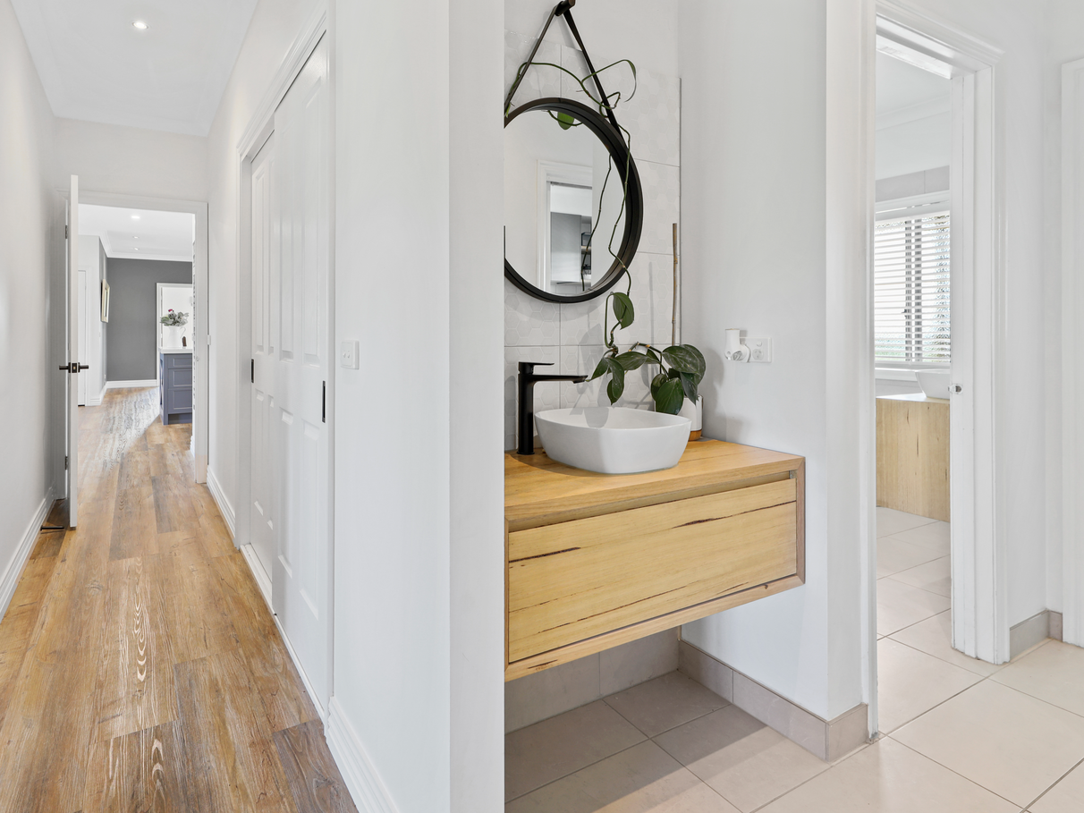 The main bathroom and powder are large enough for even the biggest family. The generous sized laundry has a built-in laundry hamper and plenty of overhead and under bench storage available. The walk-in storeroom and linen cupboard affords even more practical space.