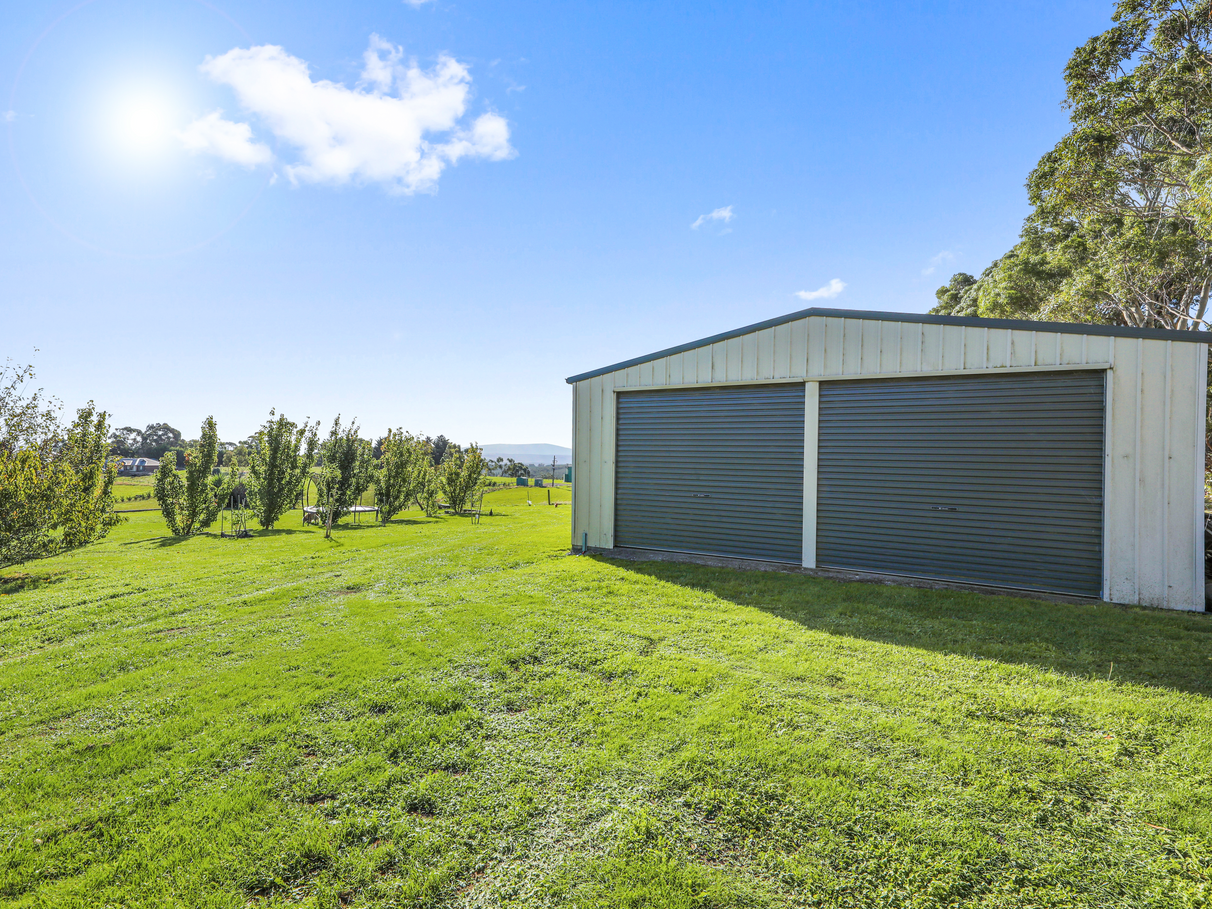 The 9x7m shed has power and a water tank connected to the three adjacent paddocks. Additional shedding allows for ample storage for wood, hay and chooks. A four car carport and asphalted driveway make for plenty of parking space.
