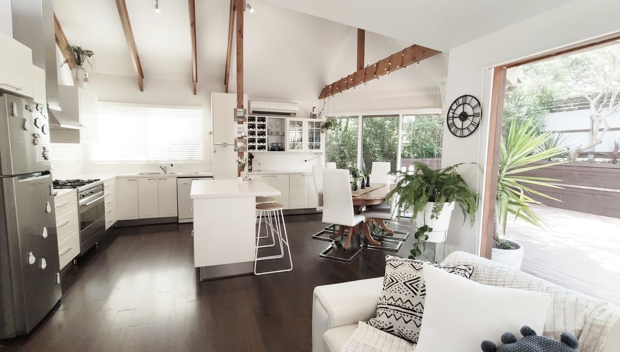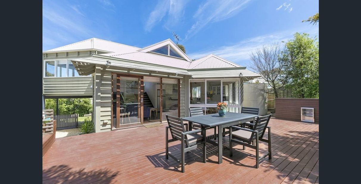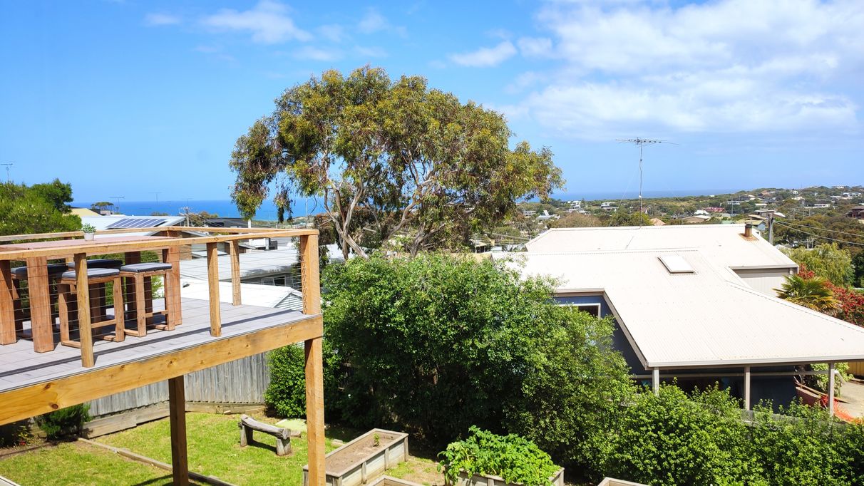 This stunningly renovated family home welcomes beaming natural light into multiple living areas and a hillside location that peers proudly over the township and the ocean. Situated on one of Australia's most famous stretches of road, this three bedroom, two bathroom property also boasts a detached fourth bedroom or home office/studio. Combining pitched roofs with modish exposed timber beams over an as-new kitchen with 900mm oven, island bench and timber floors, spilling out onto a huge, north-facing entertainer's deck with built in BBQ and lush surrounding garden. A cleverly configured open plan layout creates a general feeling of spaciousness, which is elaborated on magnificently by a second story living room and balcony with sweeping ocean views. Also featuring master with ensuite, two further generously proportioned bedrooms, stylish finishes and a double lock-up garage, this home is neatly positioned near the quiet creekside walking trails of Jan Juc.
